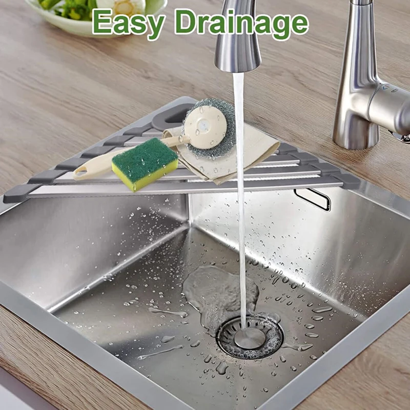 3, Multifonctionnel avec Drainage Efficient : Au-delà d’une action comme porte-éponge, ce support propose un drainage optimisé pour éviter l’accumulation d’eau et d’odeurs. Fonctionne comme station de séchage de fruits/légumes, panneau de préparation, support de refroidissement ou même une surface antidérapante pour les poêles chaudes. Le design à grille ouverte favorise la circulation de l’air pour un séchage et une eau plus rapide dans l’eau directement dans l’évier.