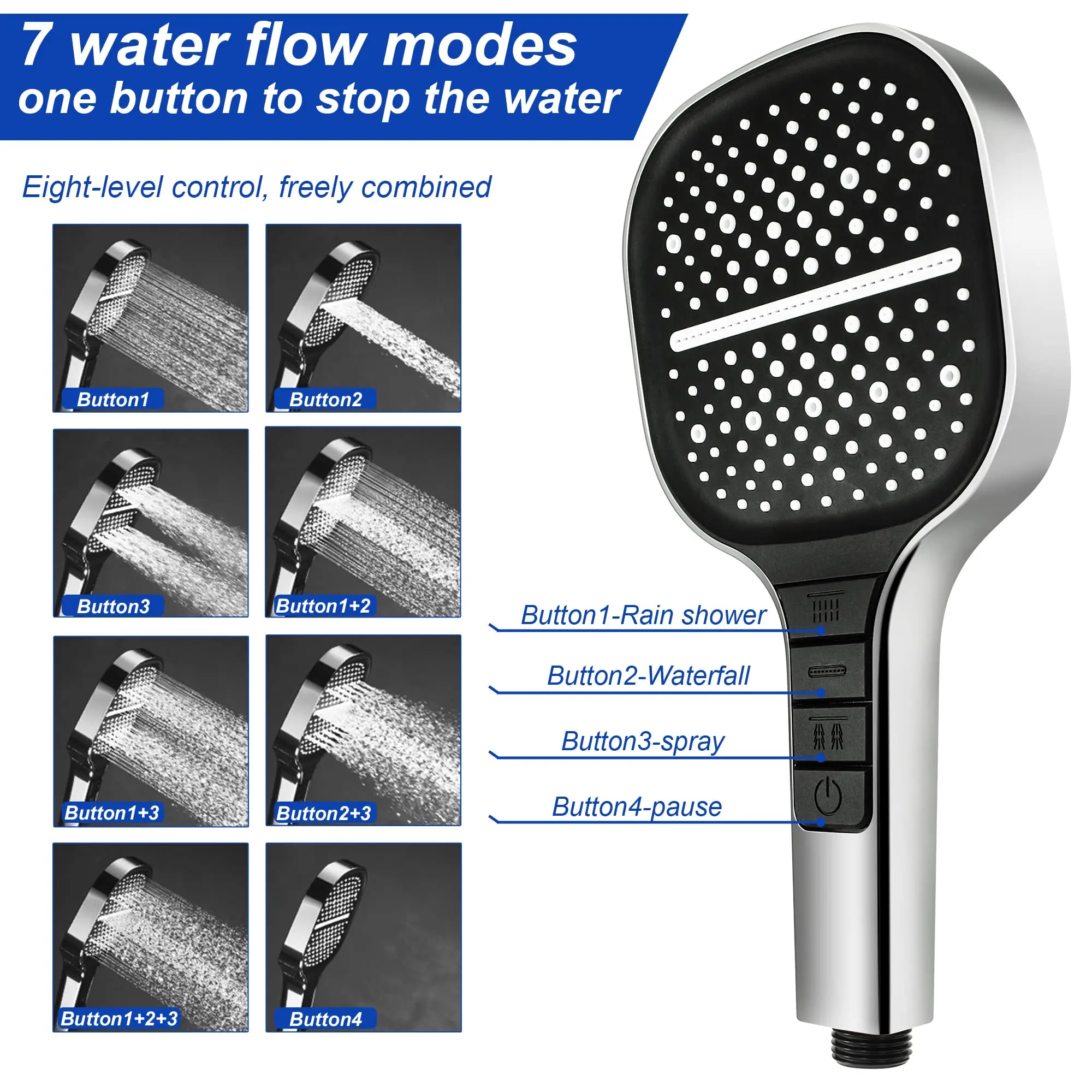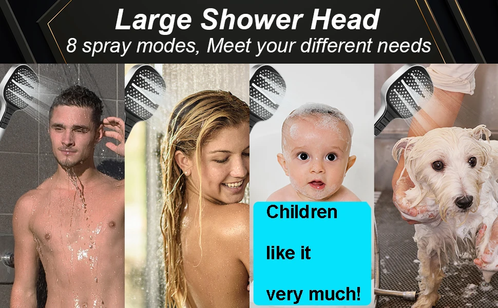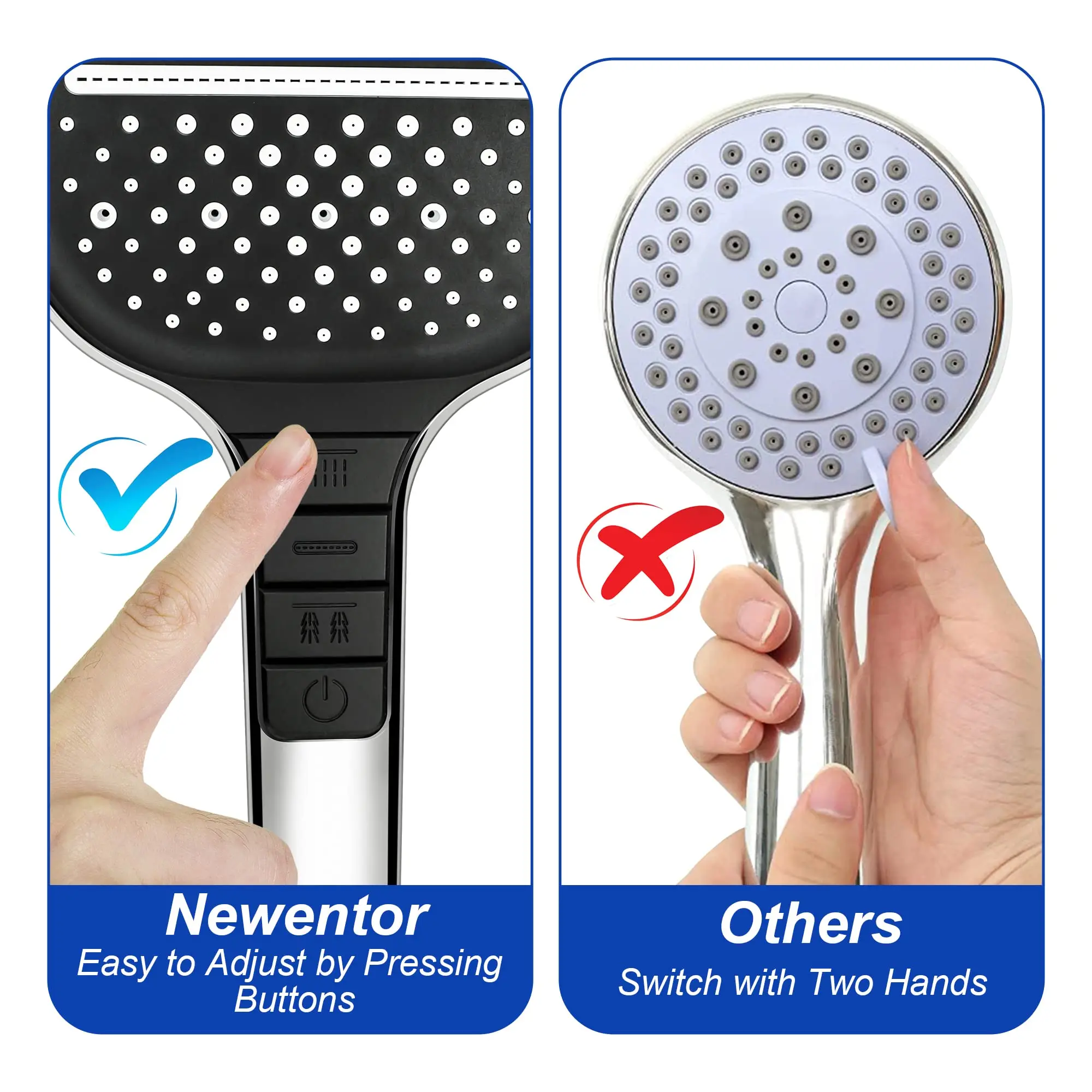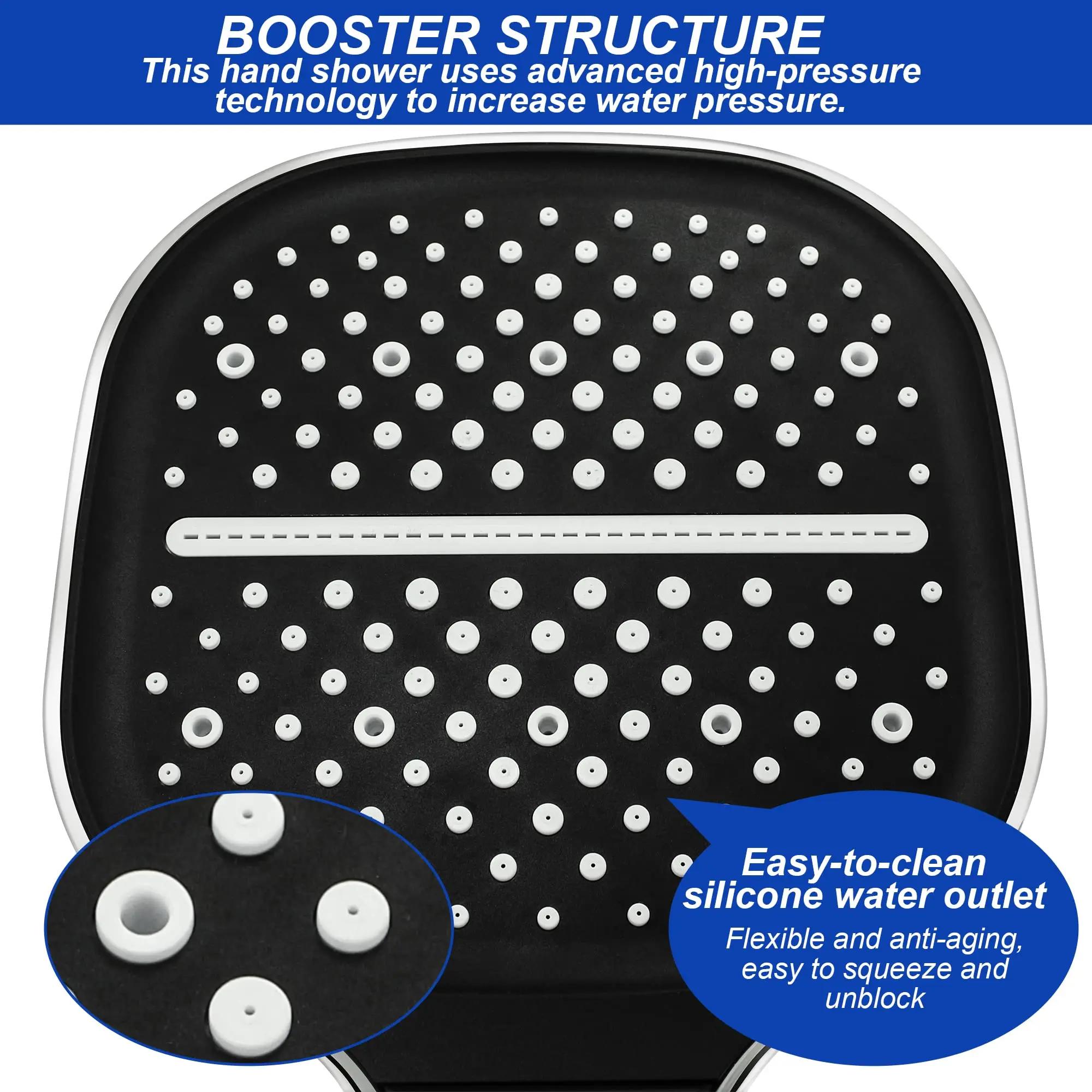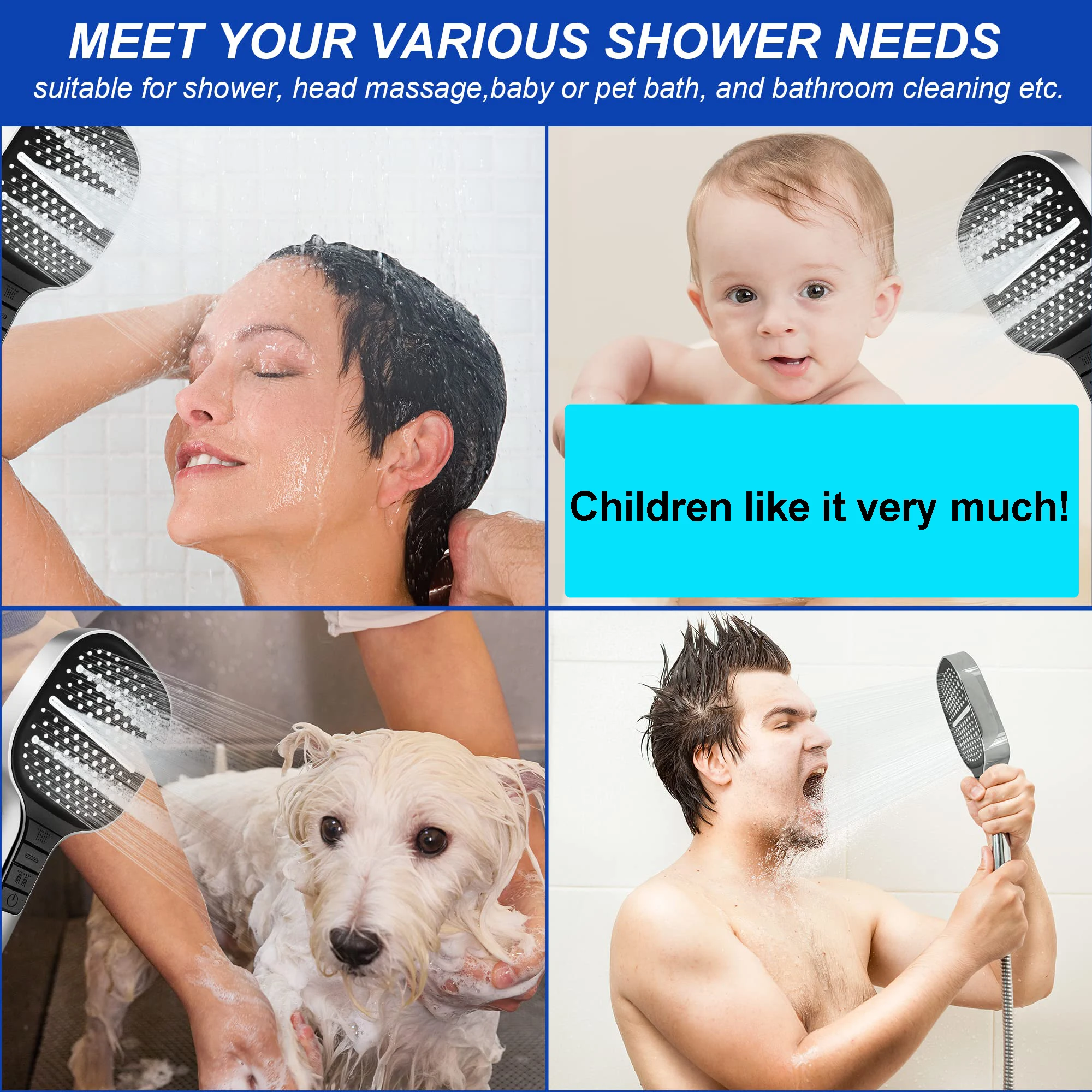 【Durable, Stylish and Easy to Clean 】- This handheld shower head is made of high quality stainless steel and brass, which is not only stylish but also durable. It is easy to clean and features pressurised silicone nozzles that prevent clogging and an efficient leak-proof design that ensures durability and reliability. Plus, its modern design adds a touch of elegance to your bathroom.