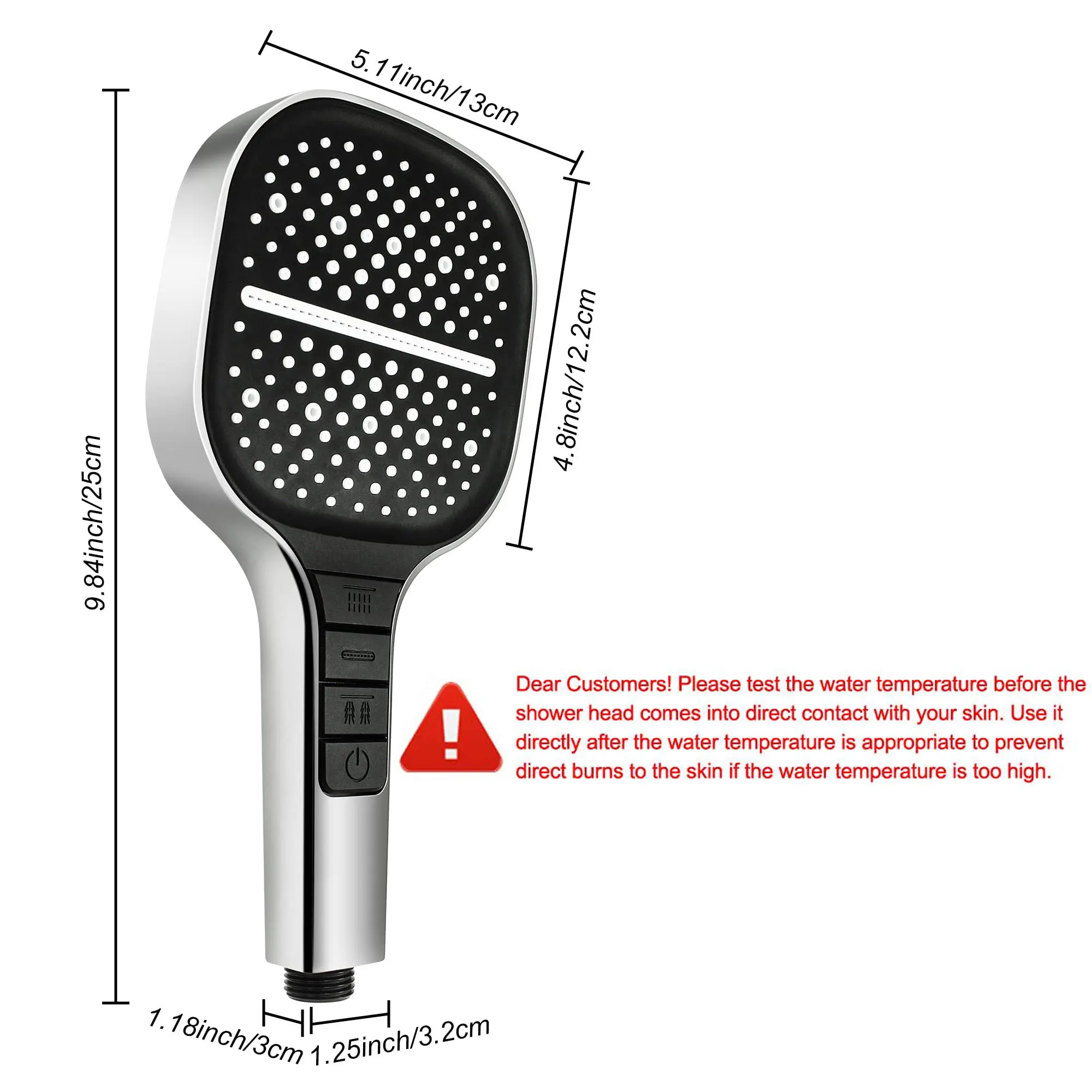 【Durable, Stylish and Easy to Clean 】- This handheld shower head is made of high quality stainless steel and brass, which is not only stylish but also durable. It is easy to clean and features pressurised silicone nozzles that prevent clogging and an efficient leak-proof design that ensures durability and reliability. Plus, its modern design adds a touch of elegance to your bathroom.