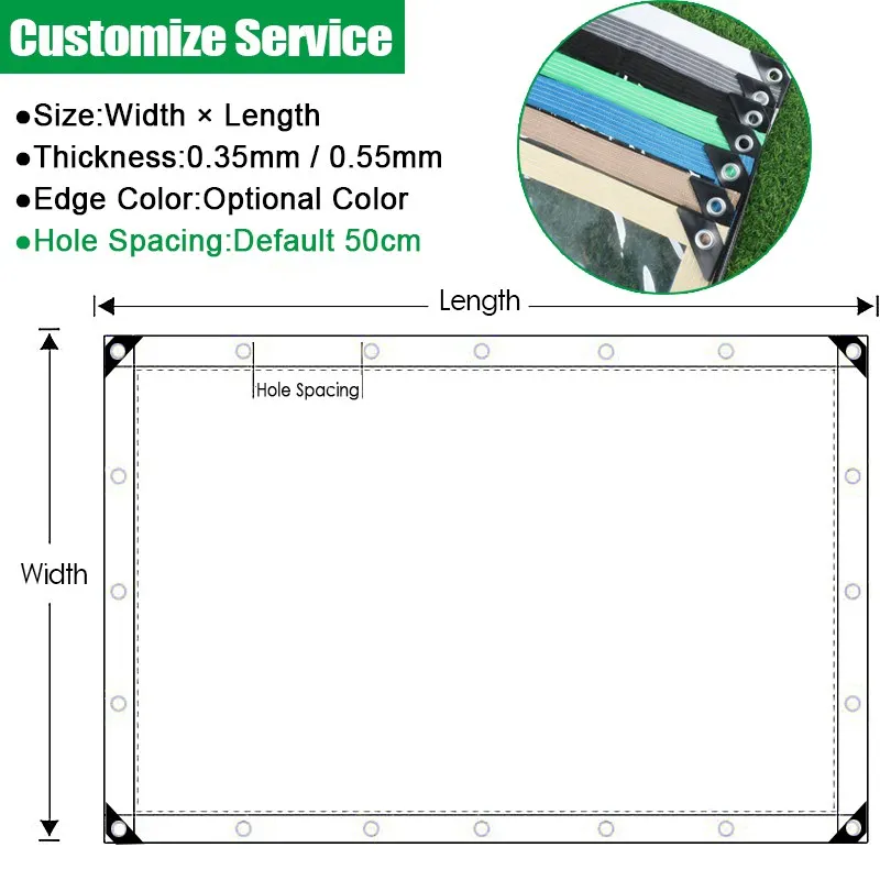 Personnalisable PVC Transparent Tissu Imperméable Épaissie Toile Transparente Abri De Plante Couverture De Pluie Pergolas Auvent Clôture Écran Étanche