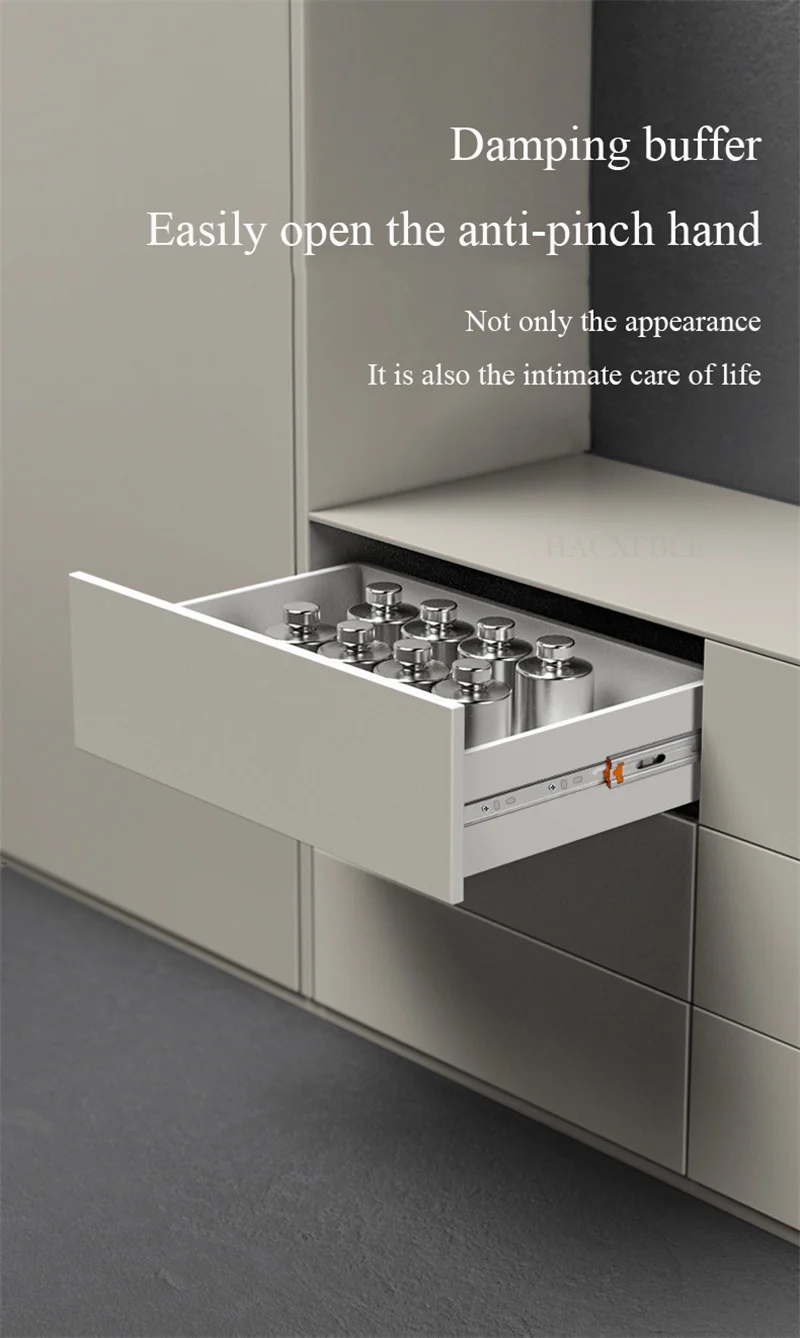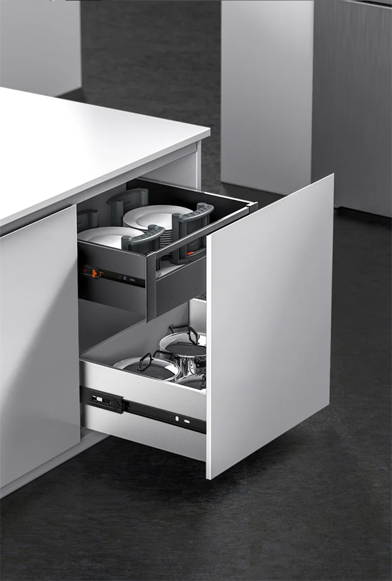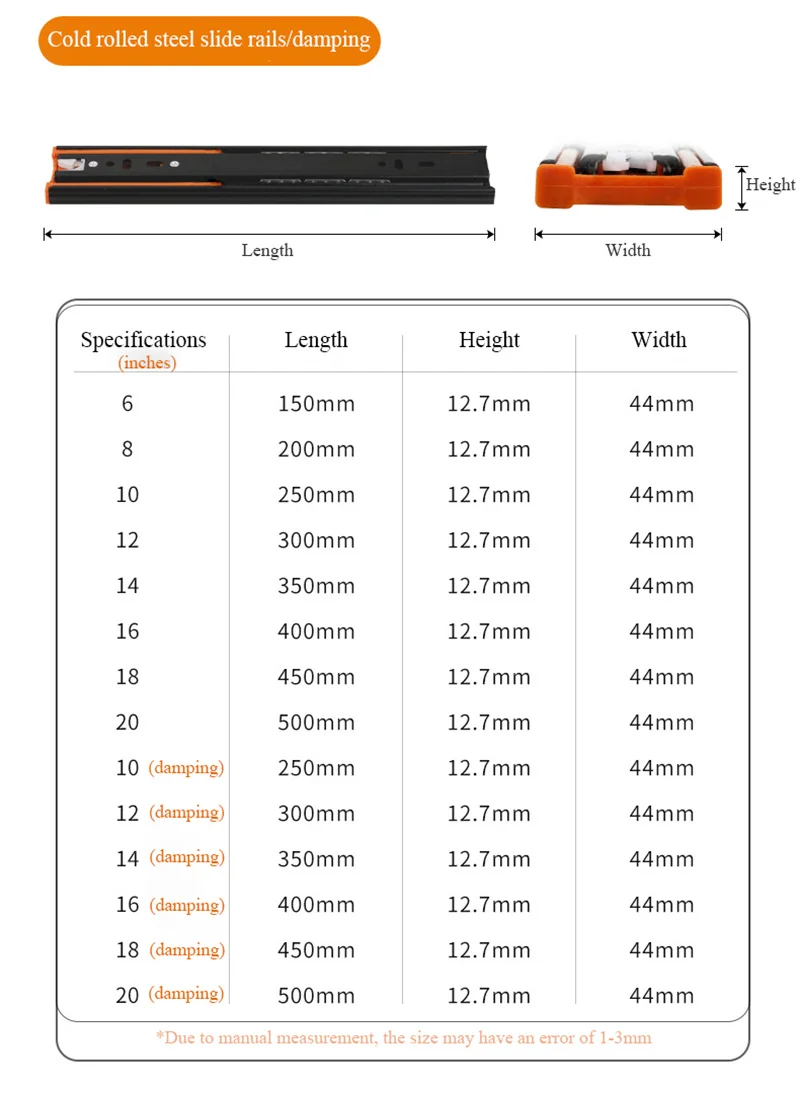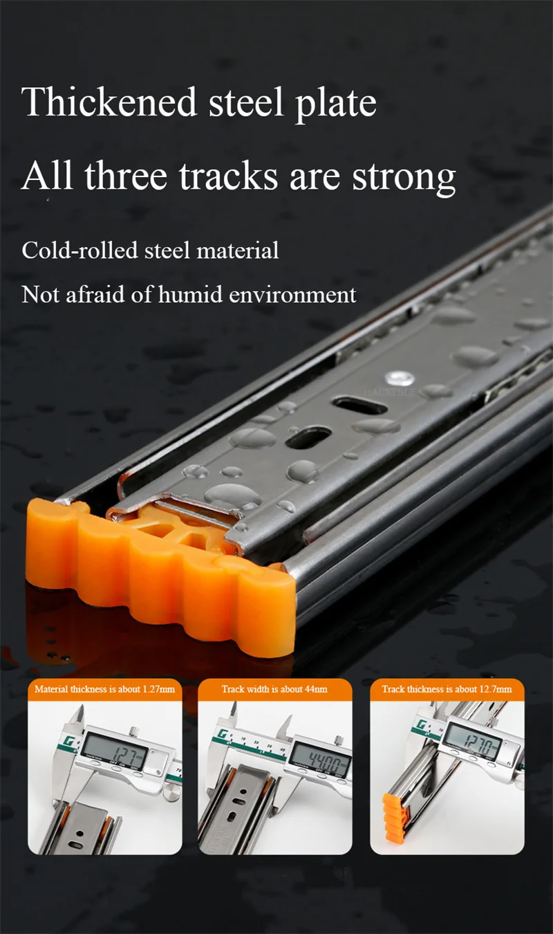 • Conception du tampon d’amortissement : La conception du tampon d’amortissement de la glissière réduit le niveau de bruit, offrant un fonctionnement silencieux et fluide pour vos armoires et tiroirs.