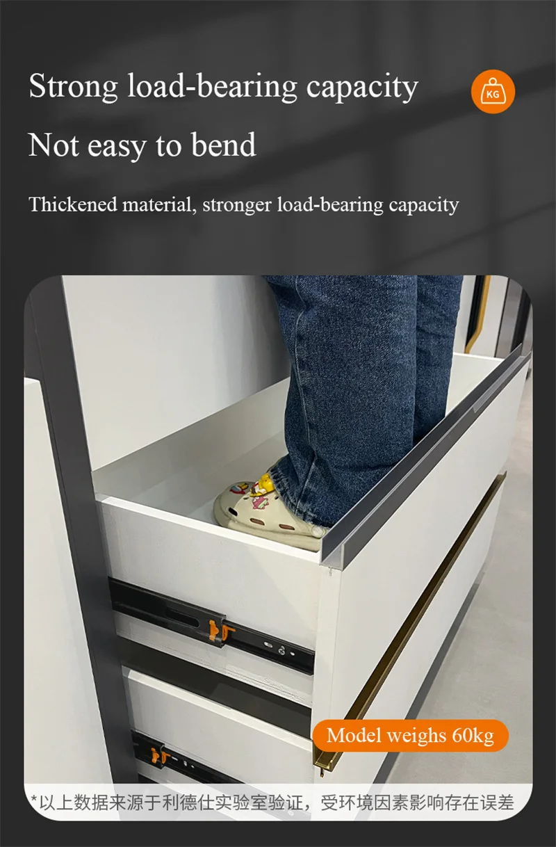 • Construction en acier laminé à froid : Fabriqué en acier inoxydable de haute qualité, ce rail d’armoire à tiroirs offre une durabilité et une résistance supérieure à la rouille et à la corrosion.