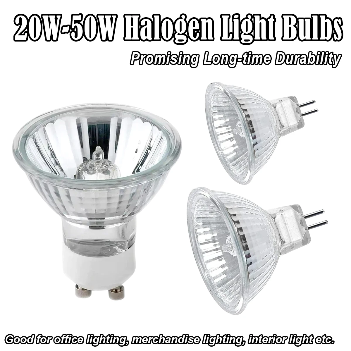 Ampoule de projecteur halogène 2 broches Gu10 Mr16 Gu5.3, ampoules à intensité variable, blanc chaud 2800k Ac220v Dc12v 30° Angle de faisceau 20w 35w 50w Verre
