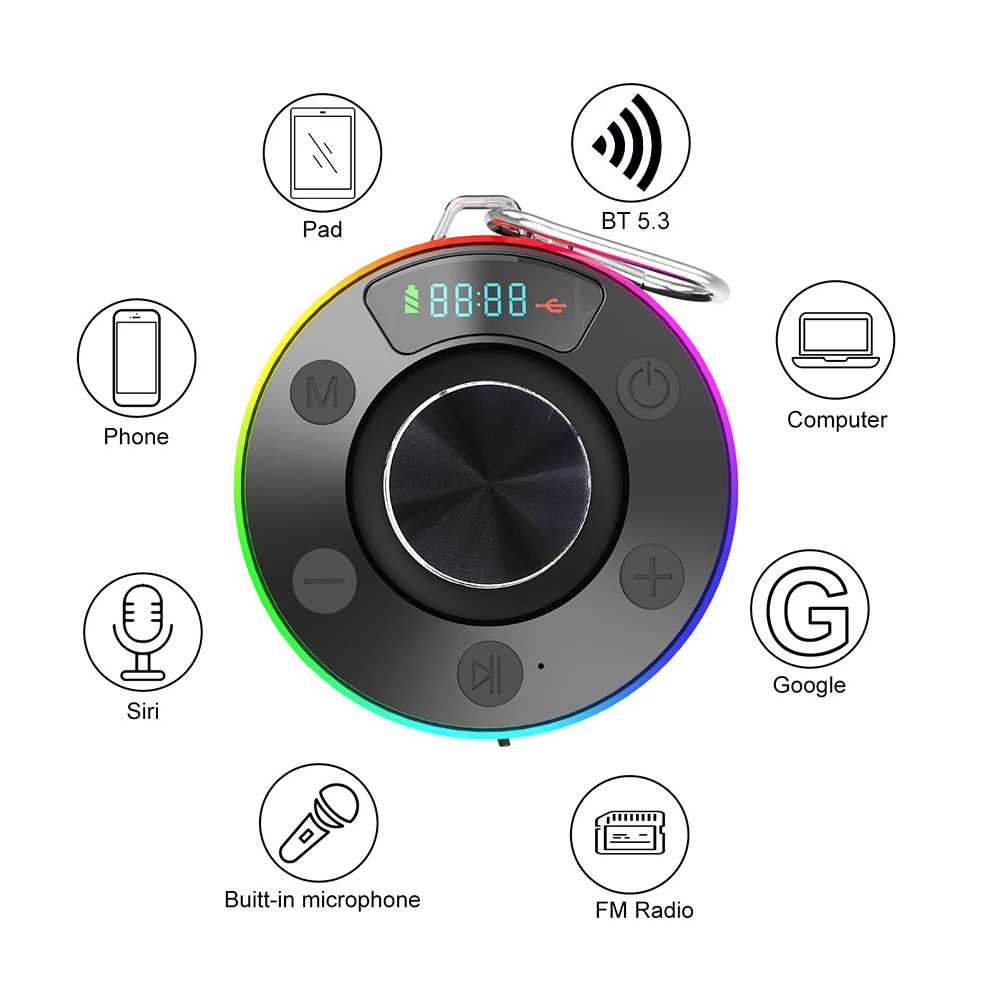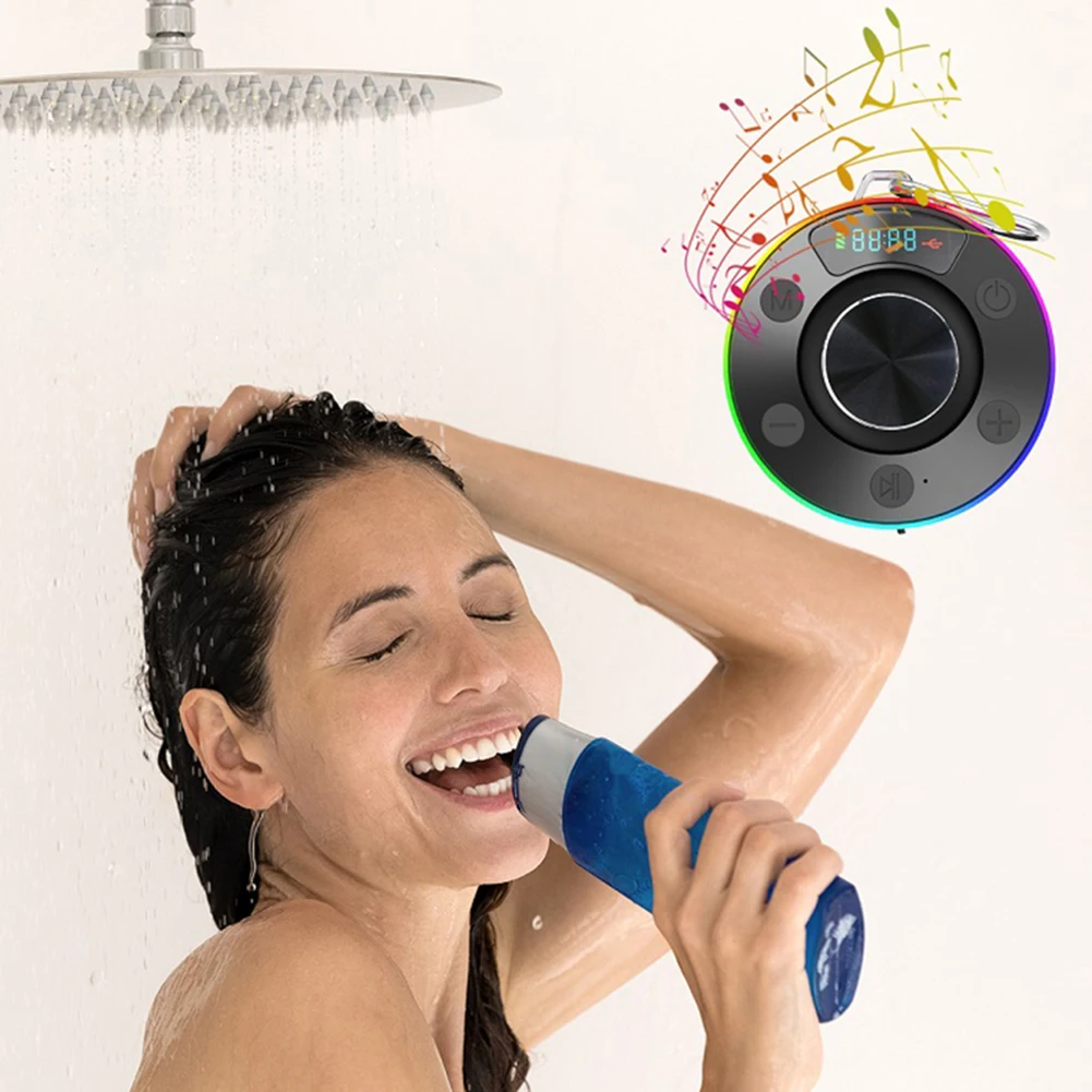 Bluetooth-Compatible 5.3 Shower Speaker IPX7 Waterproof Portable Wireless Speaker FM Radio Wireless Small Speaker with Suction Cup for Kayak Beach Pool Accessories
