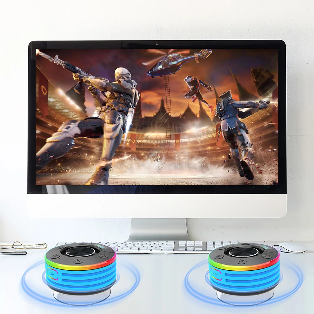 3. IPX7 Waterproof with Suction Cup: The Portable Wireless Speaker boasts an IPX7 waterproof rating, perfect for poolside, beach, or bathroom use. Its sturdy suction cup securely attaches to smooth surfaces like shower walls and glass countertops.