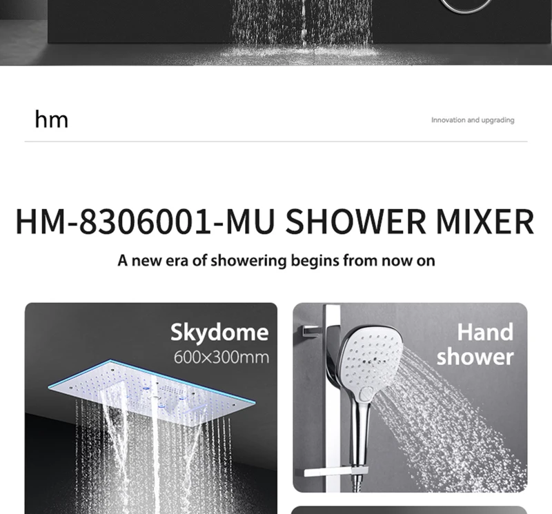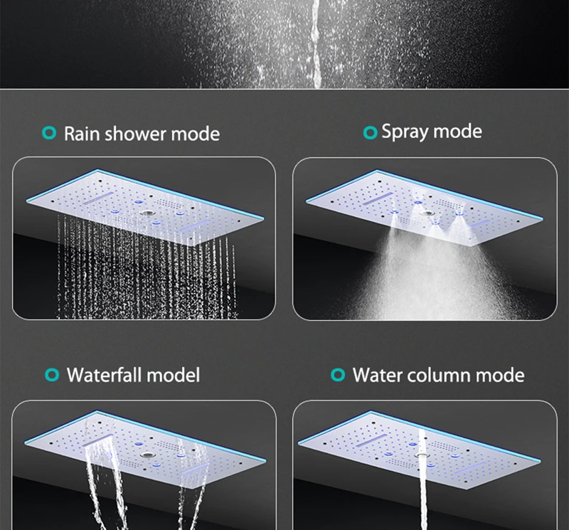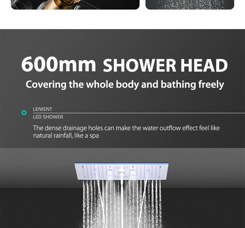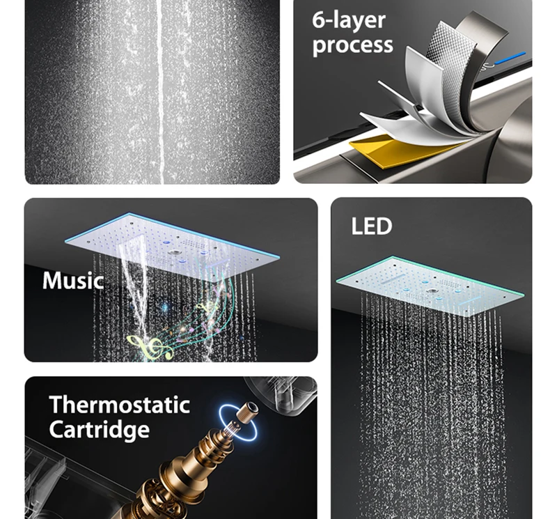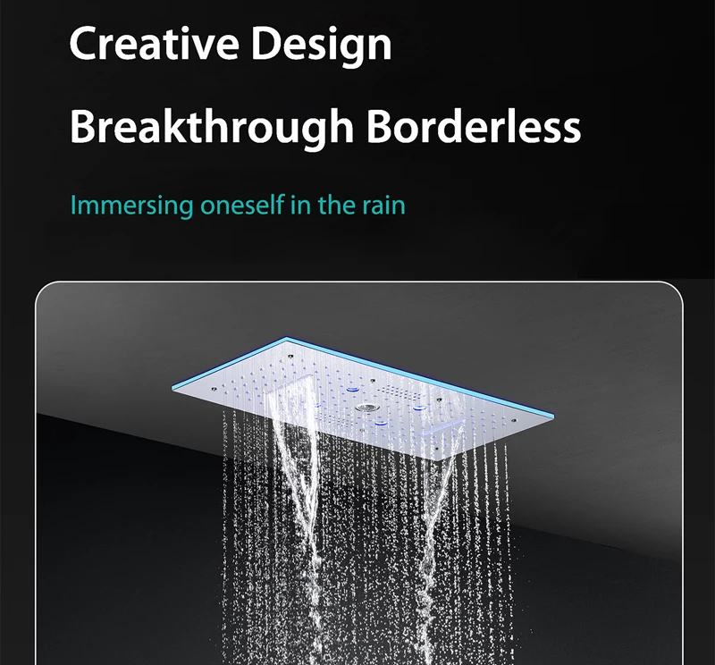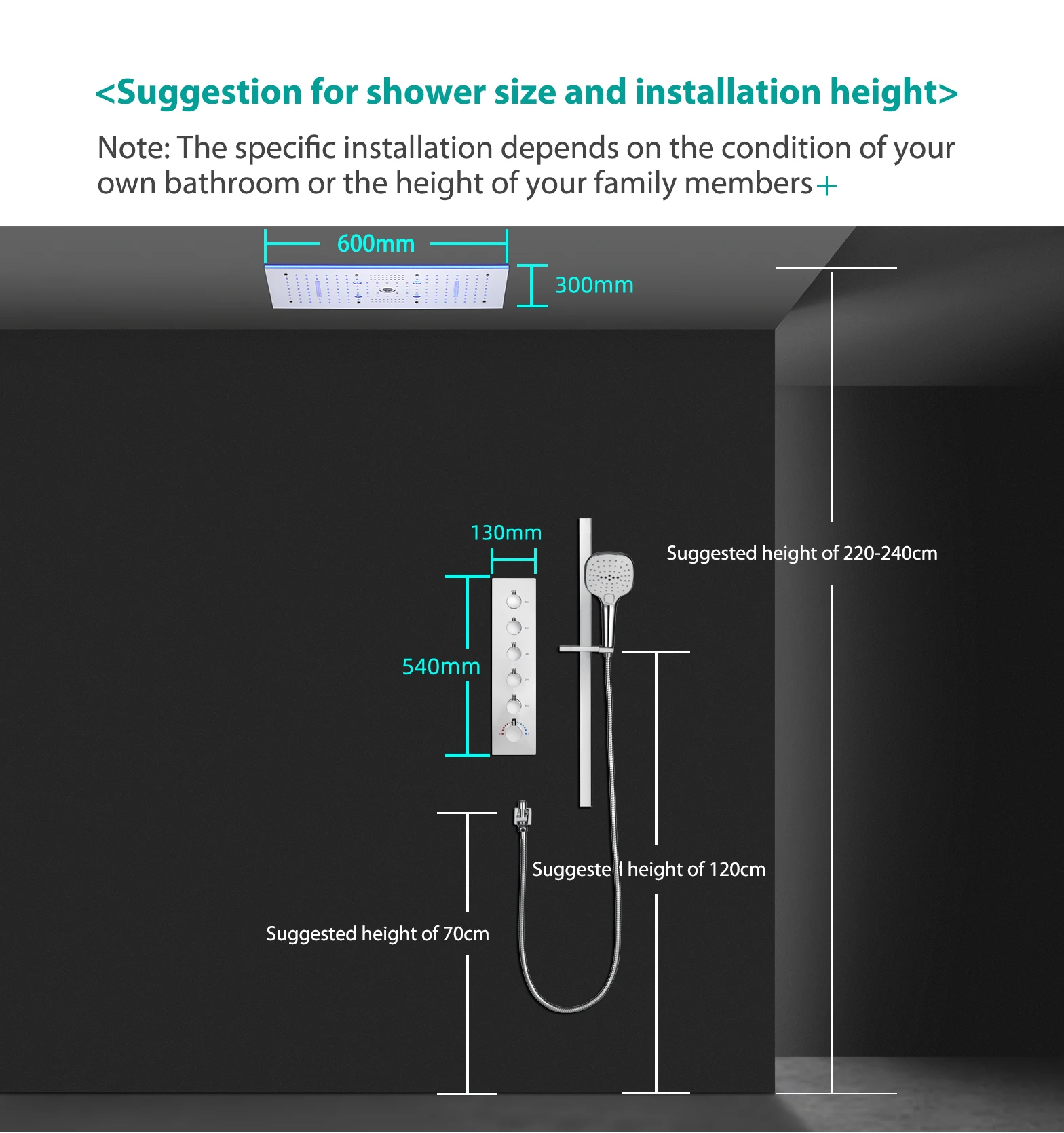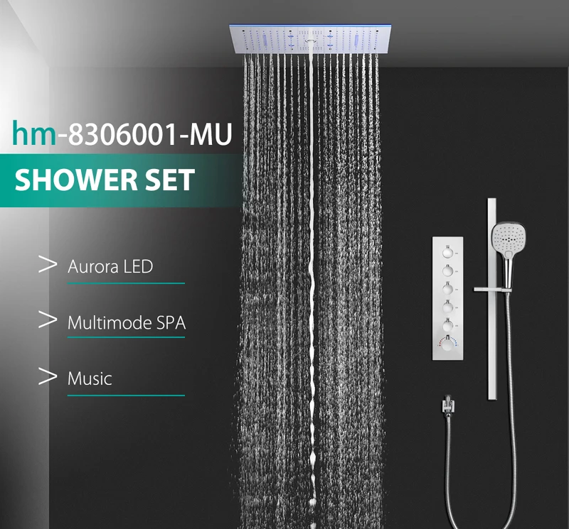 Hm Haute Qualité Musique LED Système De Douche Ensemble Grand Plafond Pluie Cascade Pommeau De Douche 600x300MM Salle De Bains Thermostatique Mitigeur Robinets