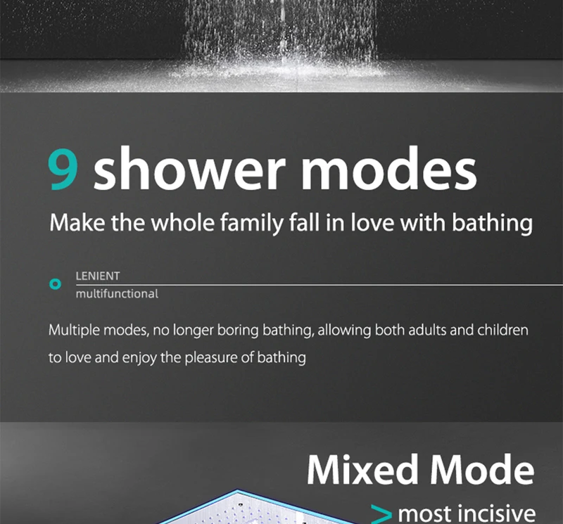 - Functions: Rainfall,Waterfall,SPA mist ,Water column,hand shower and Spout