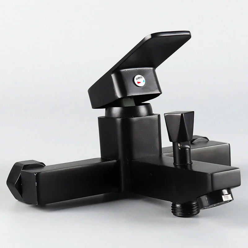 Robinet de salle de bains Type de douche Tête de robinet noir Robinet mitigeur mural pour baignoire et douche Robinet de douche Ensemble mélangeur