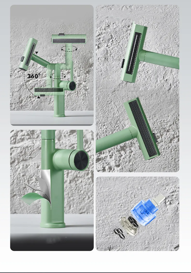 Soyez le premier à laisser votre avis sur “HOBasin-Mélangeur d’évier en laiton à levier unique multifonctions, grue chaude et froide, robinet vert chromé noir, nouveau”