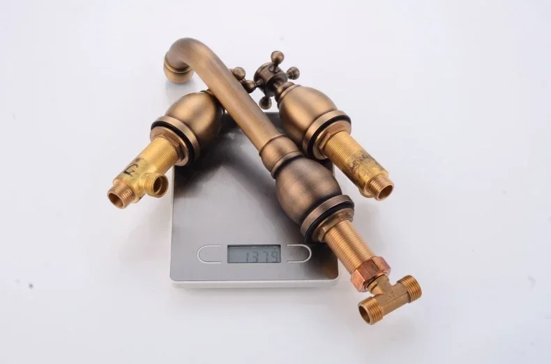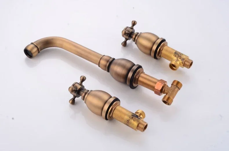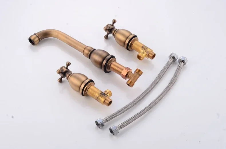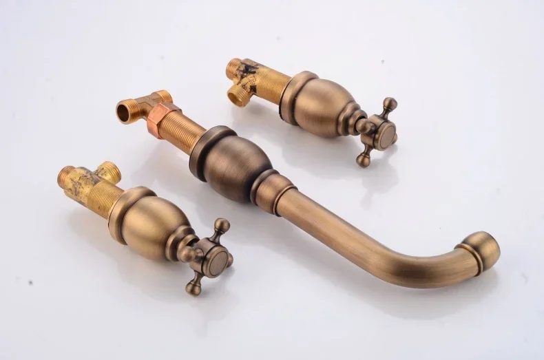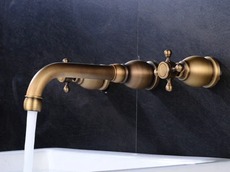Ensemble de robinet de lavabo mural en laiton à double poignée robinet d’évier de salle de bain mural robinet mural chaud et froid