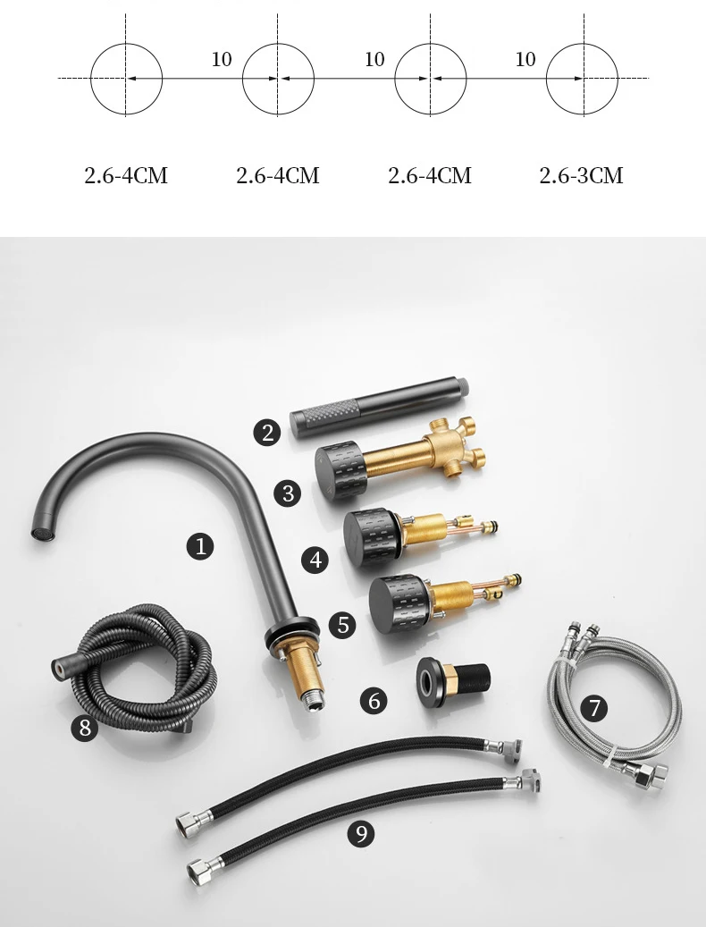 7. Livré avec des tuyaux d’eau en acier inoxydable et des pièces d’installation