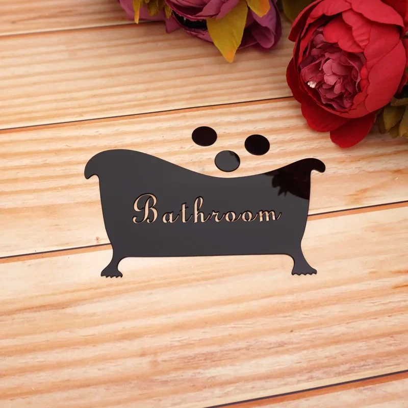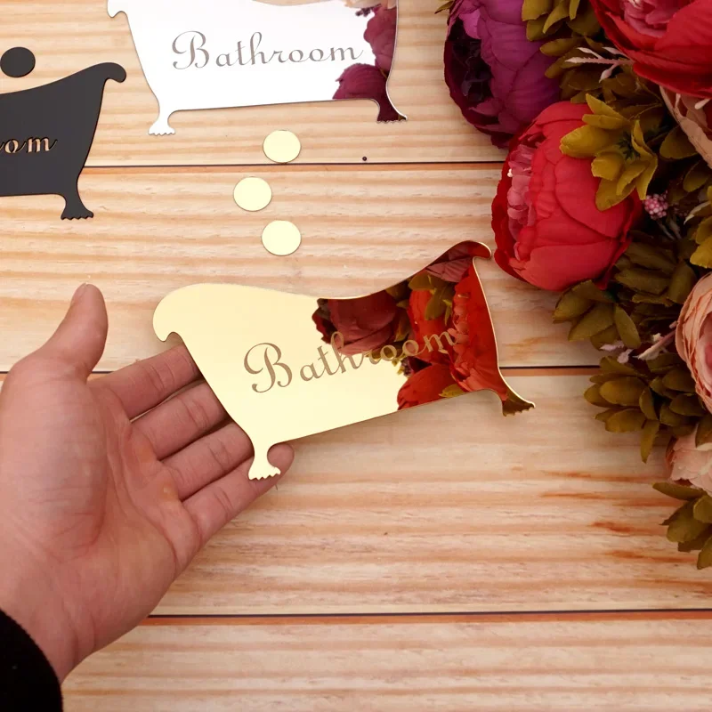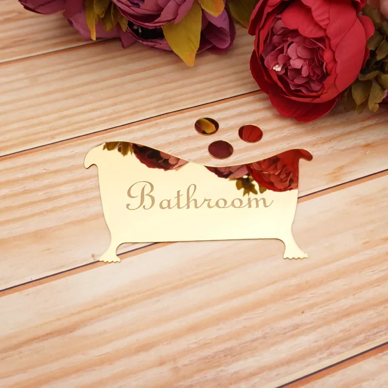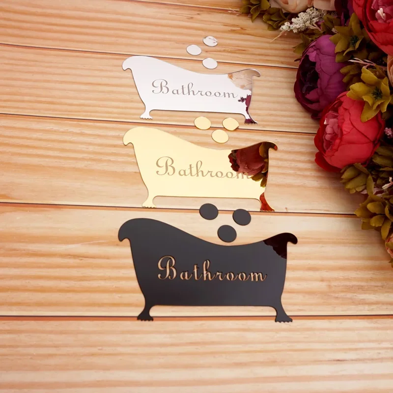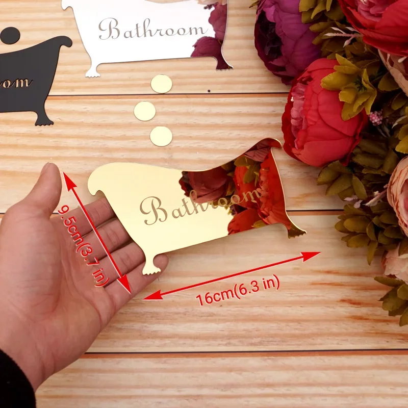 HOEntrance-Panneau de Surface Miroir Acrylique, Autocollant de Porte Or et Argent, Signe de Direction de Salle de Bain, Décoration de Maison, 16,4x9,5 cm