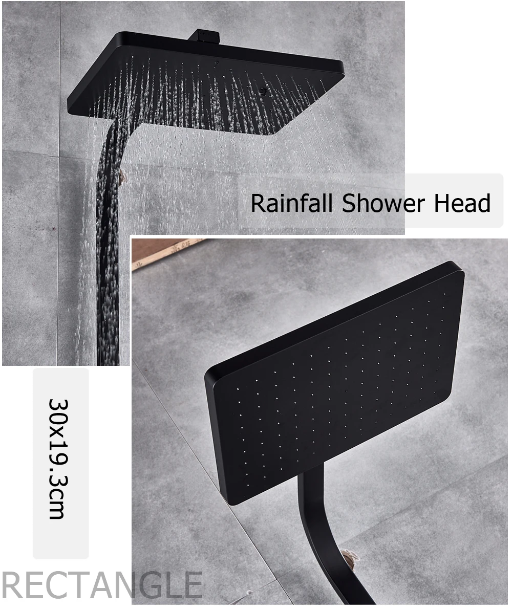 Écran numérique panneau de douche noir montage mural lumière LED ensemble de douche colonne de douche tour 3 poignées 2 fonctions Massage JetUSD 239.25-303.34/pièce