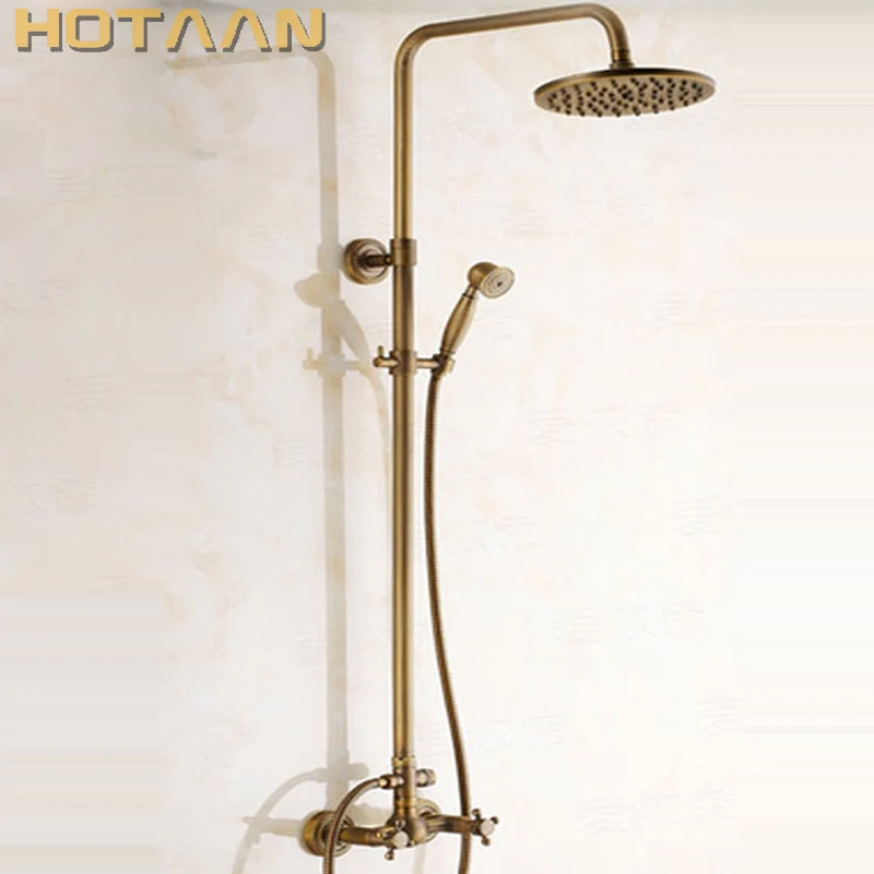 Ensemble de robinets de douche à effet de pluie en laiton à montage en Surface de salle de bains de luxe en laiton Antique avec douchette à main + bec de baignoire + pomme de douche 8 pouces