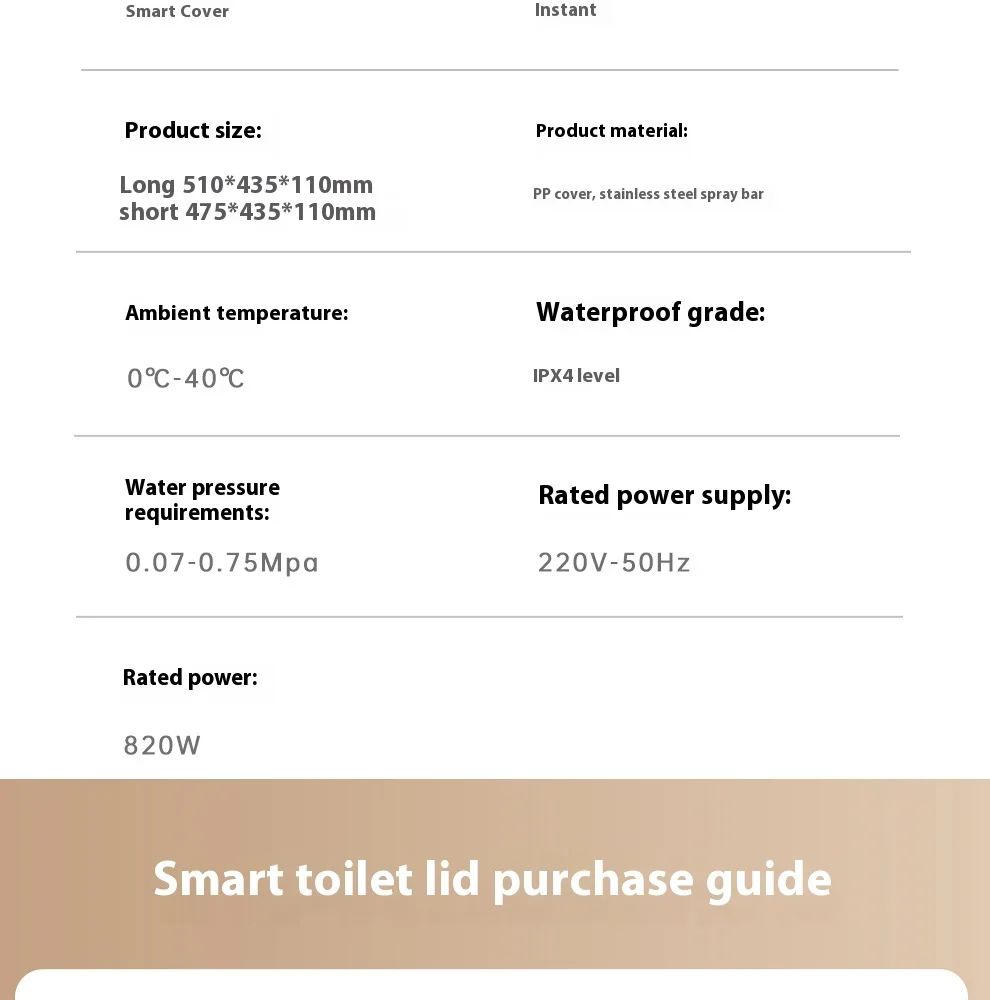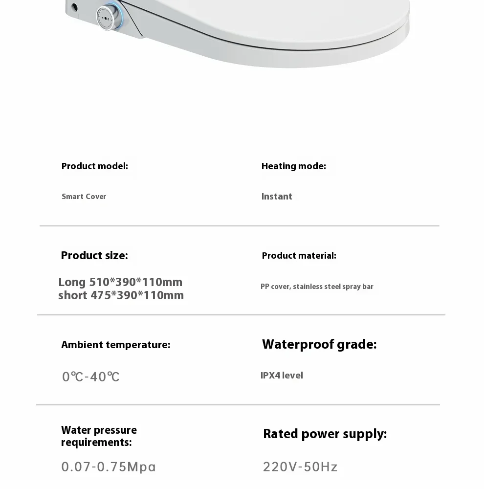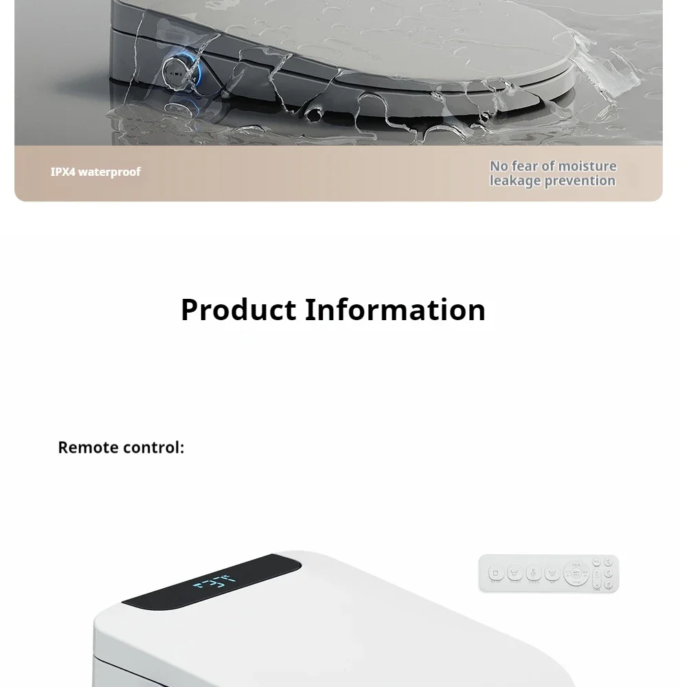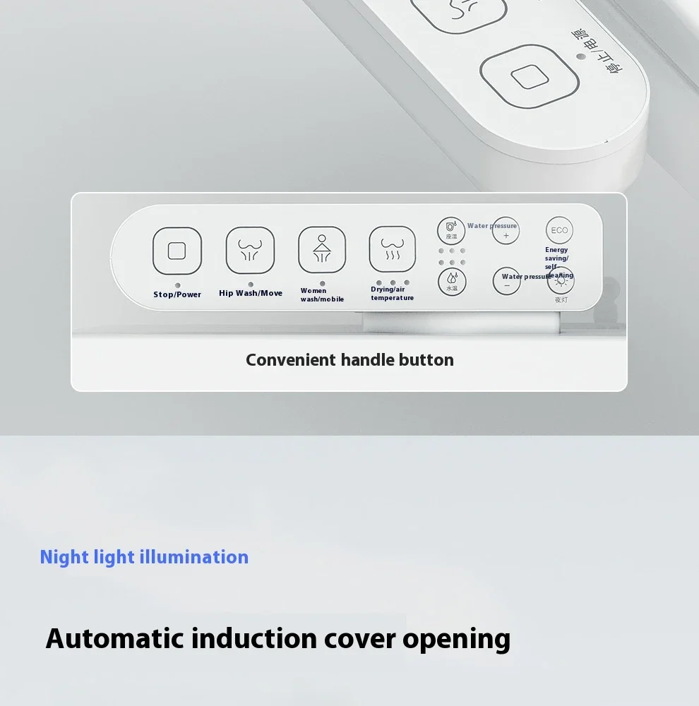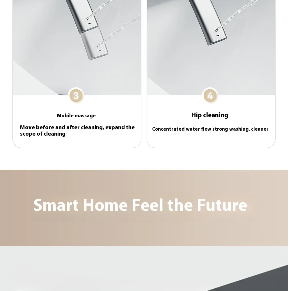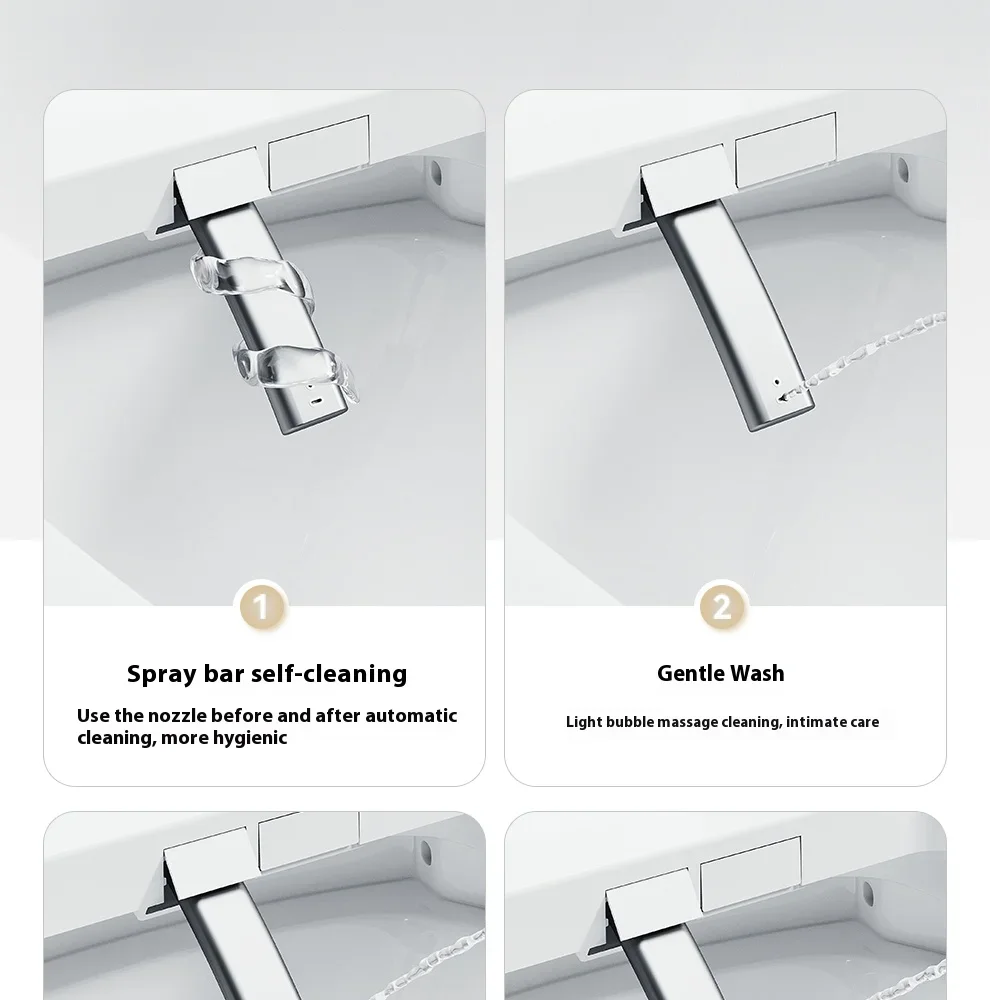 3.Ce couvercle de toilette intelligent a plusieurs fonctions, comprenant une barre de pulvérisation autonettoyante, une nettoyage à l’eau chaude, un nettoyage par massage, un chauffage du siège, une veilleuse, une séchage à l’air chaud, une désodorisation, une couvercle rabattable automatique (avec ouverture automatique sélectionnée), etc.