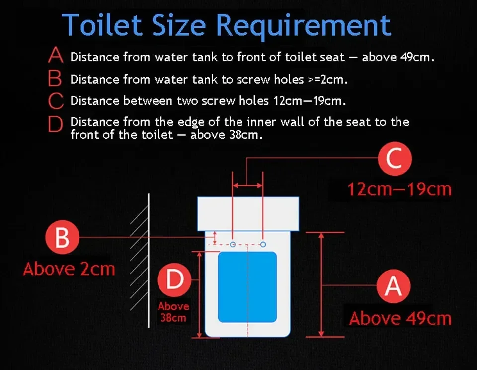 2.Si vous avez aucune questions sur la fonction de taille, veuillez s’hésitez pas à contacter le service client à tout moment.Nous correspondons le produit le plus approprié pour vos toilettes basé sur les informations de taille vous fournissent.