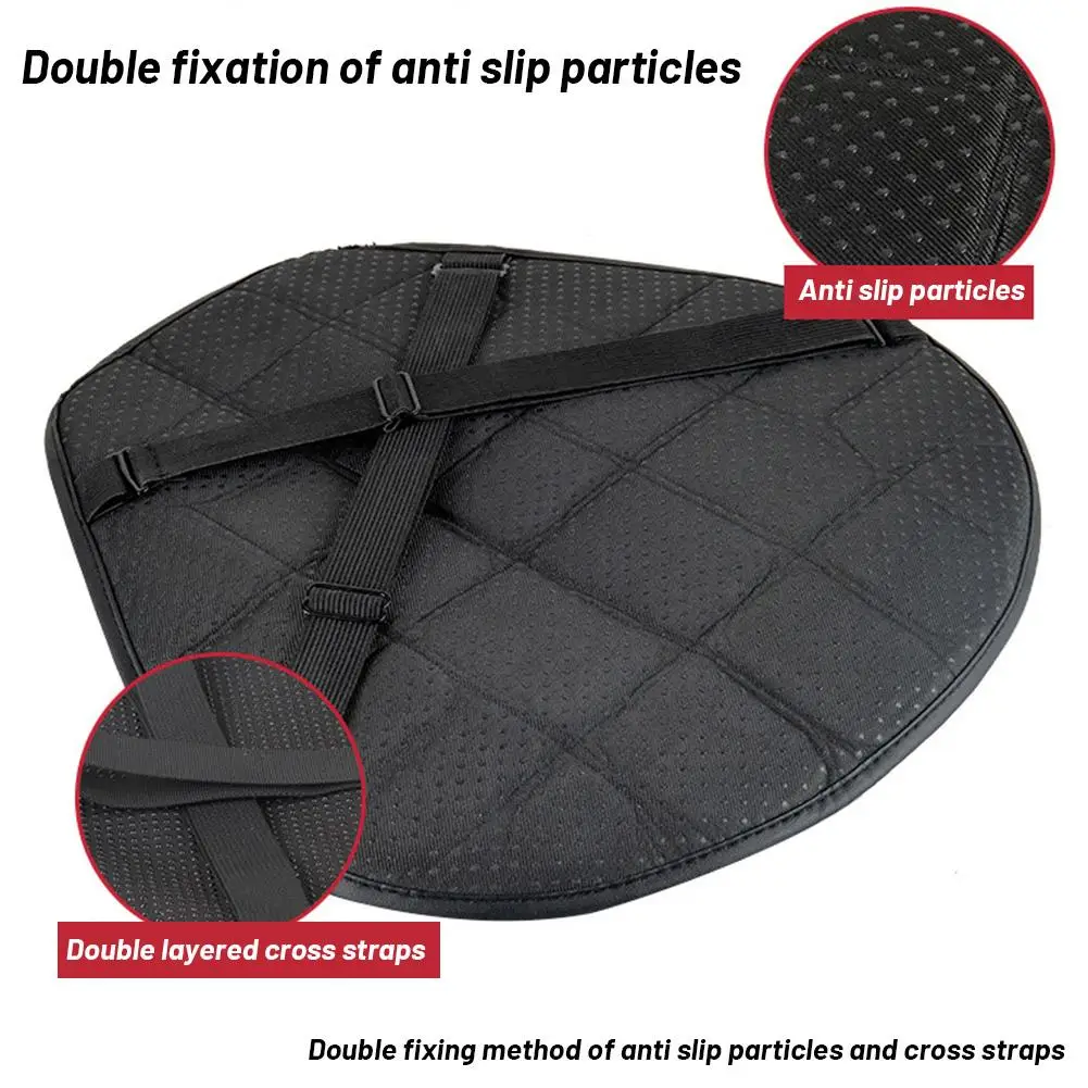 Bandages antidérapants fixes Afin de maintenir le coussin dans la position souhaitée, nous utilisons des particules antidérapantes et des bandages double couche pour le fixer.Le bandage adopte la méthode de cerclage croisé pour prendre soin de la forme du siège et permettre au siège et au coussin de siège de mieux s’adapter.Le bas du coussin de moto est également conçu avec des particules antidérapantes uniques.Soyez plus soigné et stable.