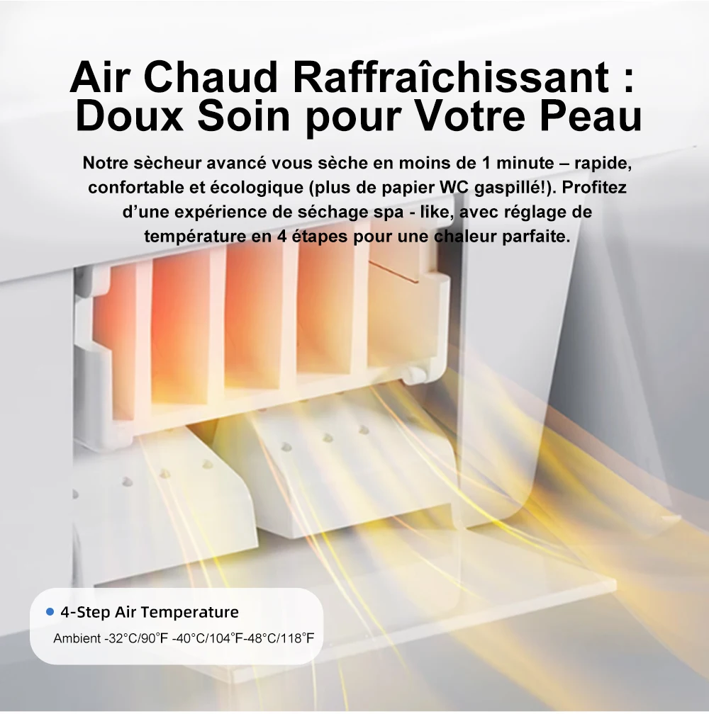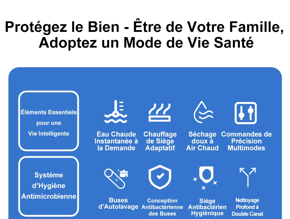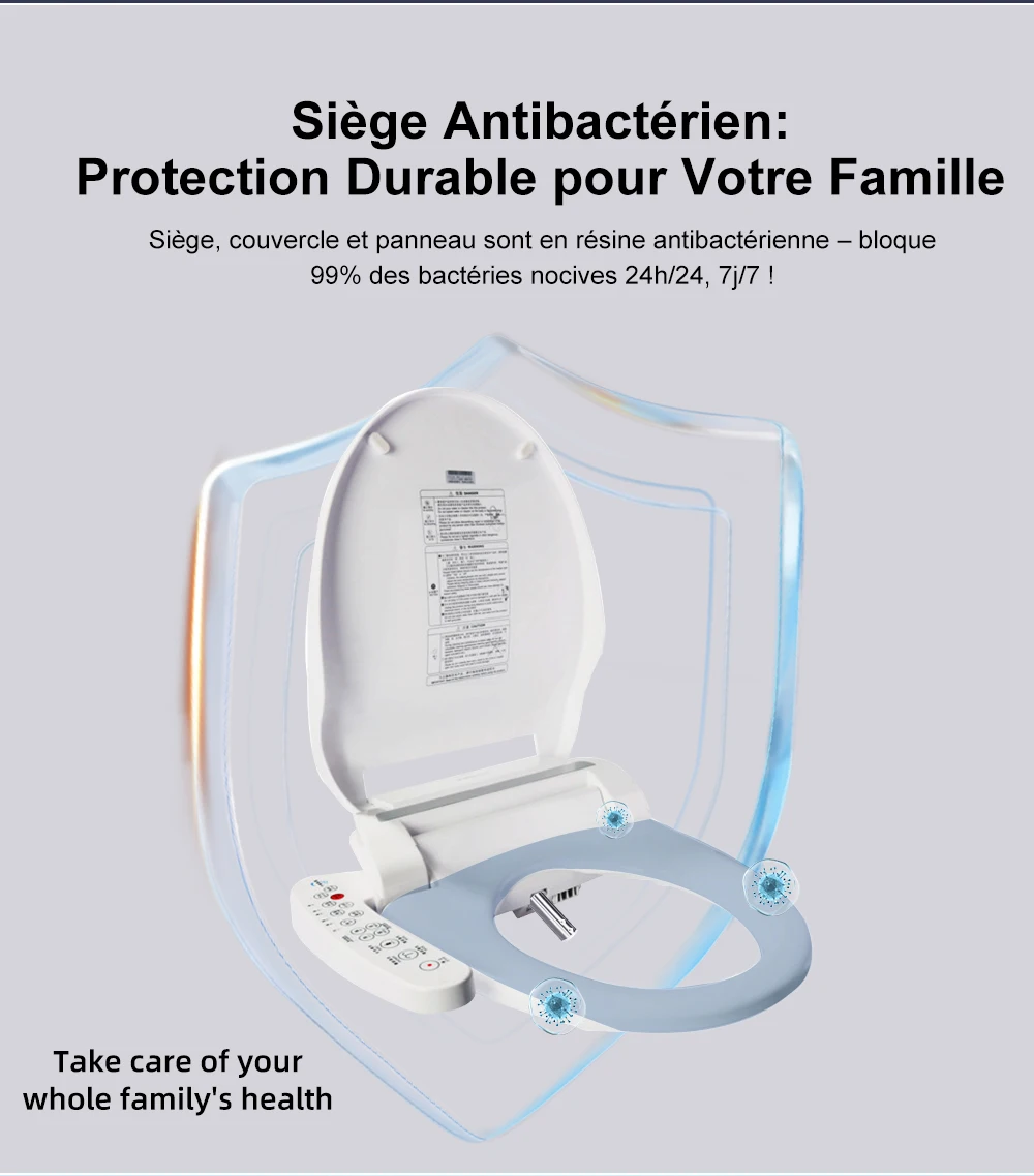 Quatre protections de santé et de sécurité :siège antibactérien, interrupteur de protection contre les fuites, niveau Ipx4 étanche, protection contre les brûlures à sec.