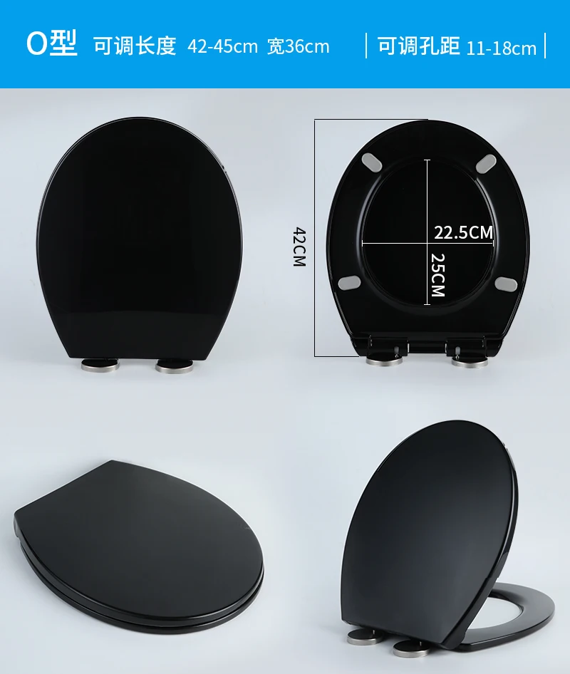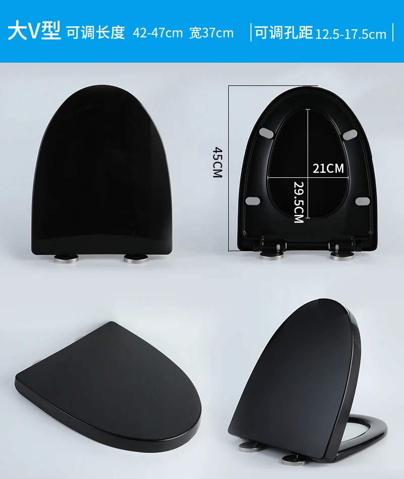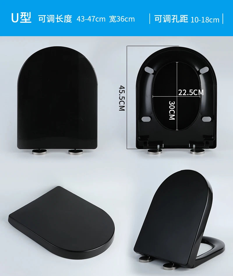 Housse de siège de toilette noire épaisse, universelle, douce et silencieuse, pour toilettes U/V, accessoires de salle de bains durables, pièces de toilettes à domicileHousse de siège de toilette noire épaisse, universelle, douce et silencieuse, pour toilettes U/V, accessoires de salle de bains durables, pièces de toilettes à domicile