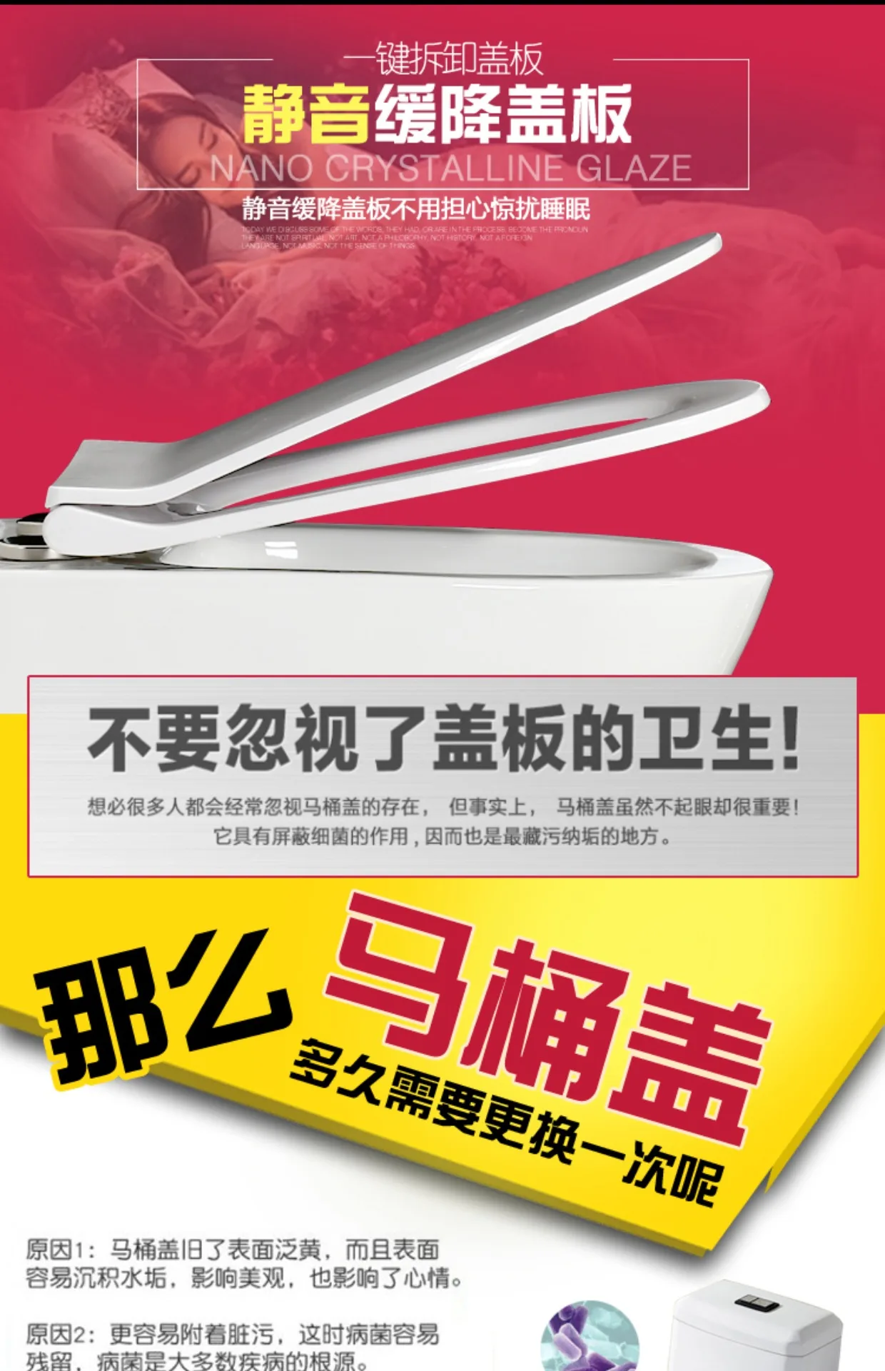 Conception de couvercle de toilette amovible en un clic