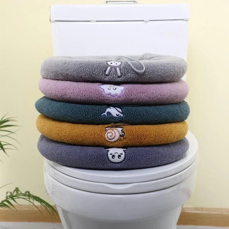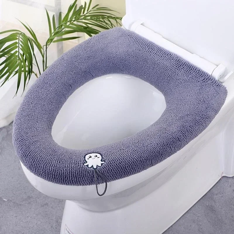 housse siège toilette épaissie peluche chaude extensible lavable universelle moutarde antidérapante rembourrée confortable tricotée respirante saisonnière installation rapide