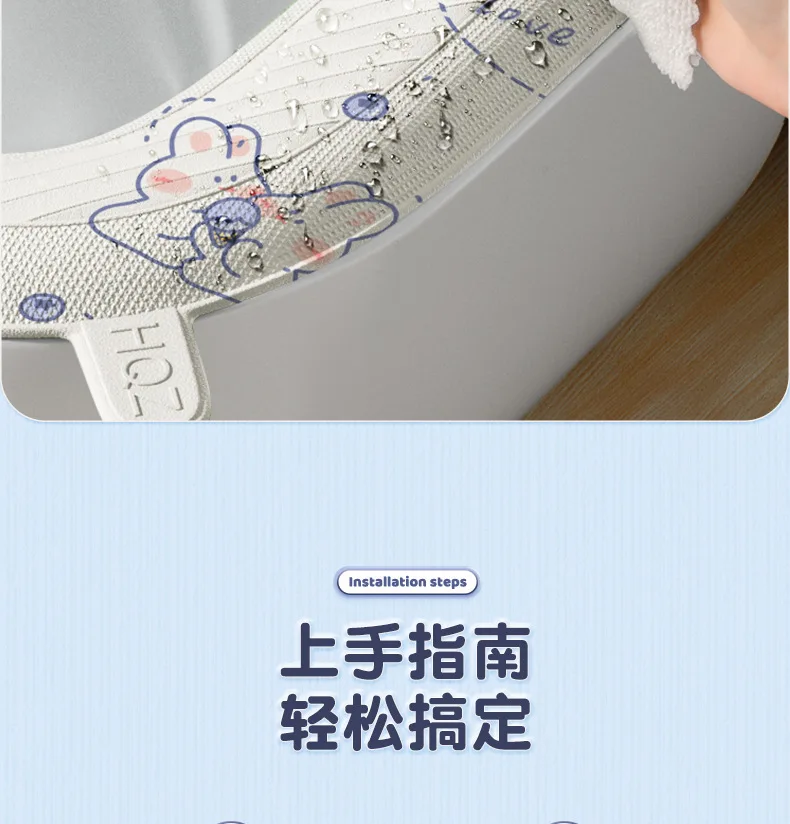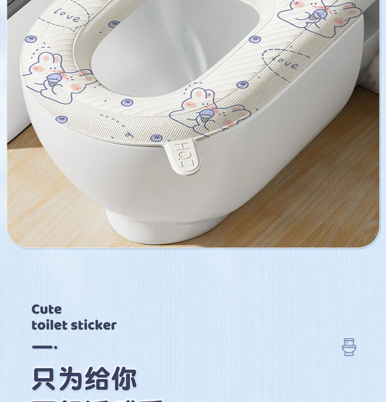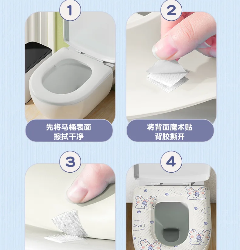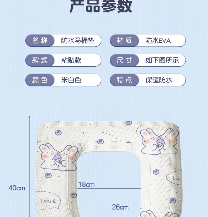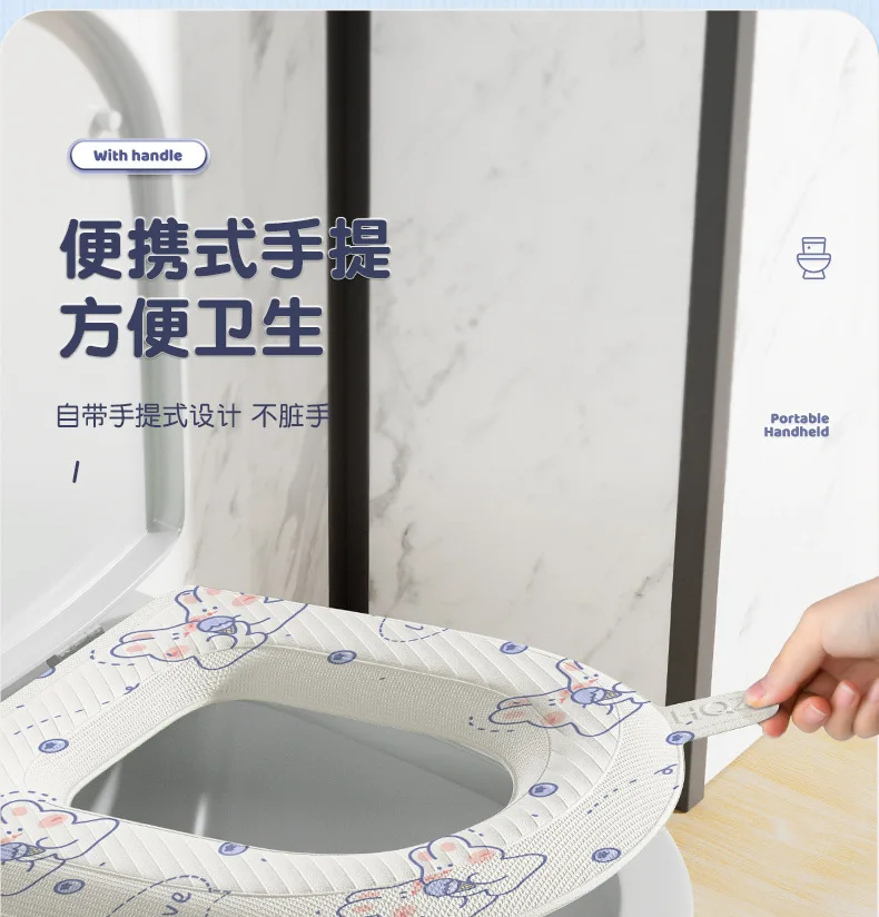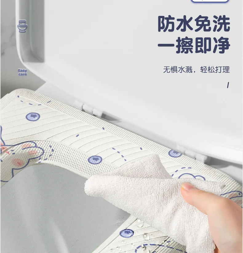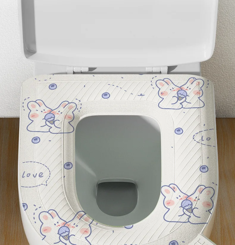 housse siège toilette rembourrée forme U universelle antidérapant surface texturée entretien facile lavable imperméable motif lapins pastels bords renforcés