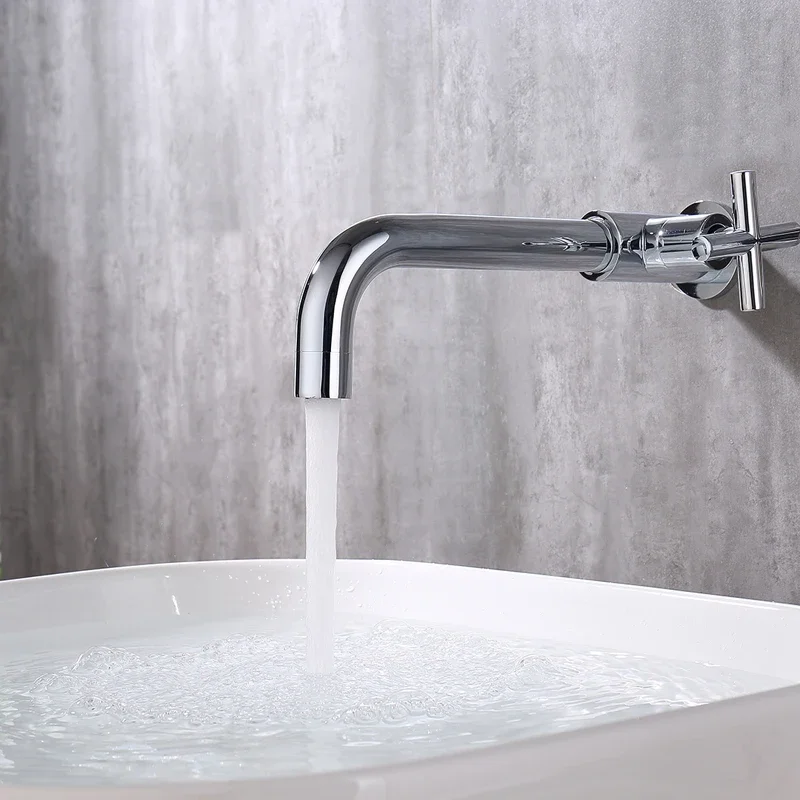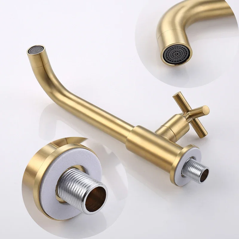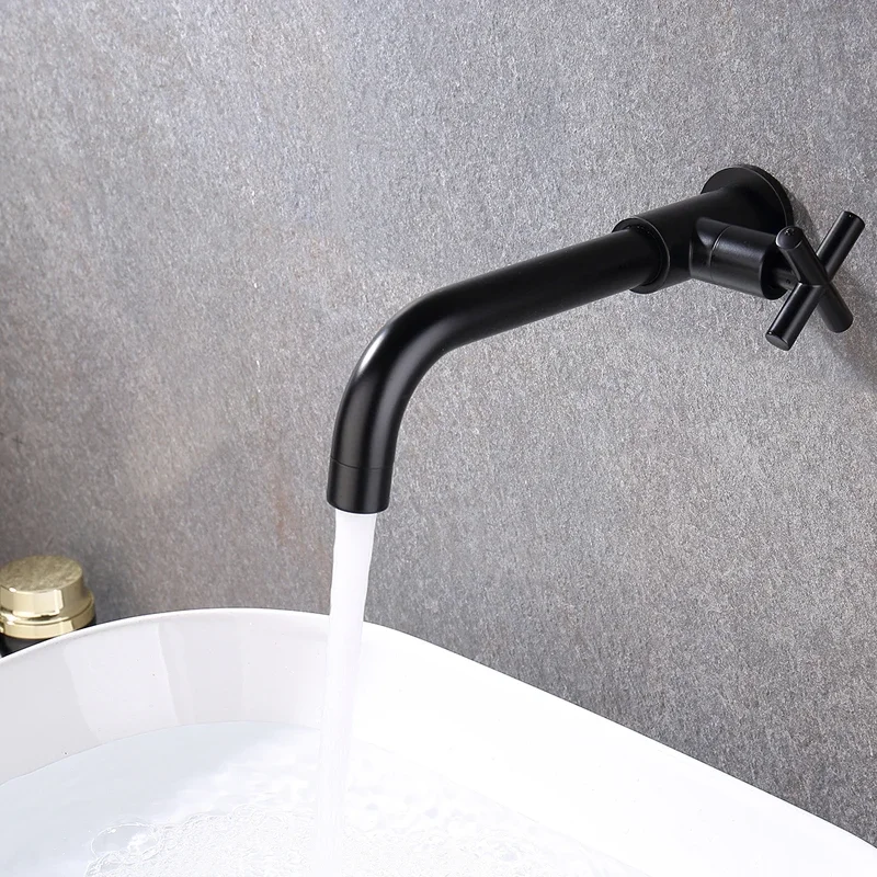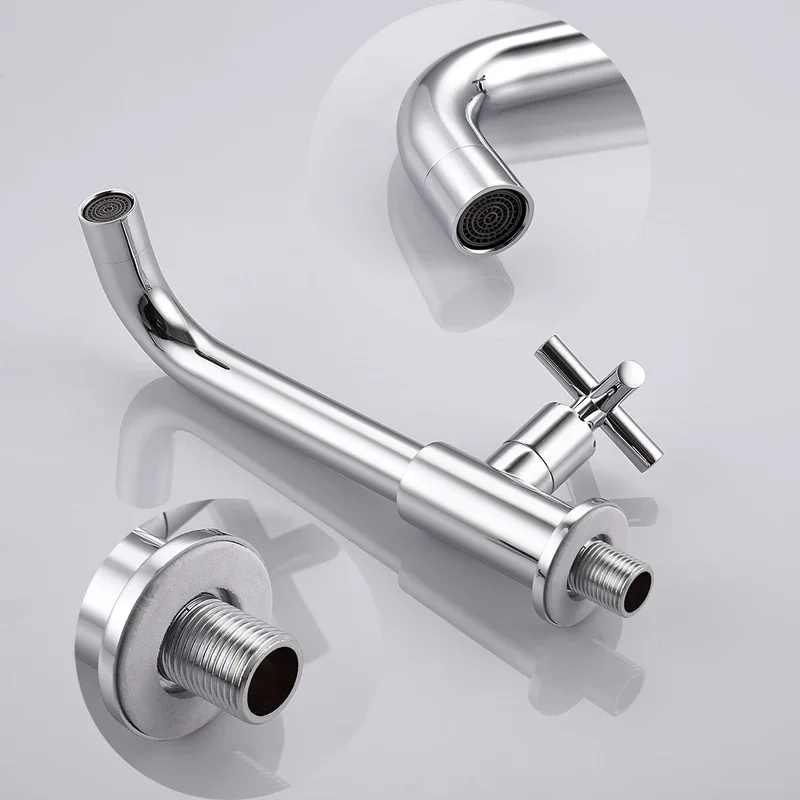 Robinet de lavabo mural robinet d’eau froide simple robinet d’évier de cuisine de salle de bain robinet d’eau de jardin long bec vadrouille robinet de piscine