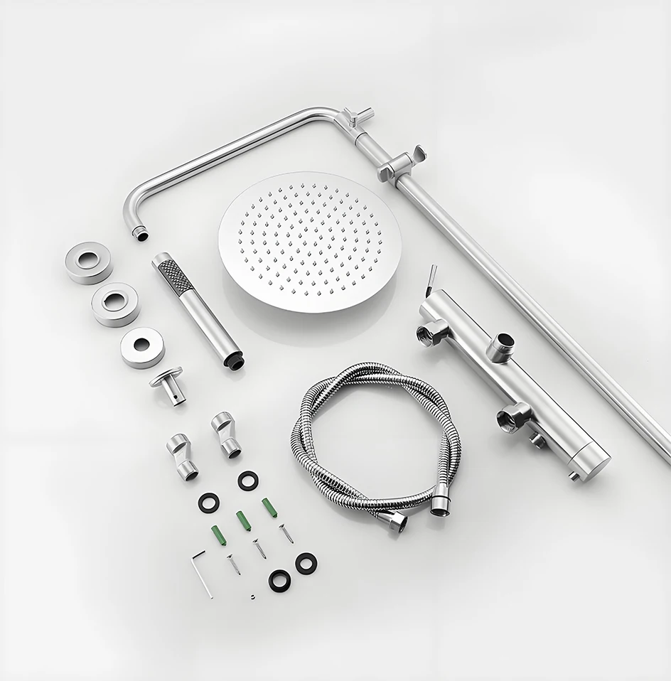 - Brushed shower set: Stainless Steel shower system