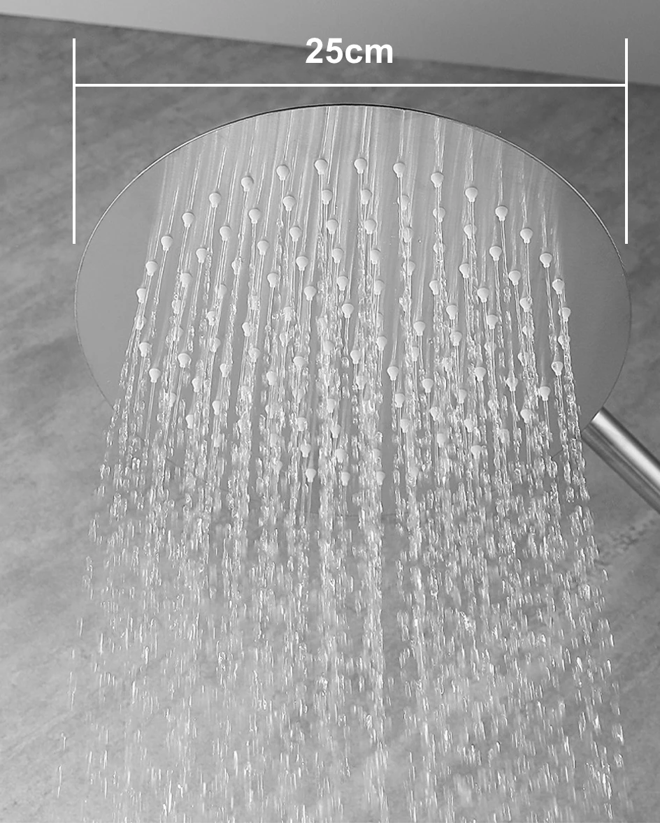 Le spray supérieur de grande taille couvre tout le corps avec de belles gouttelettes d’eau, comme une forêt tropicale, rendant chaque pouce de peau confortable.