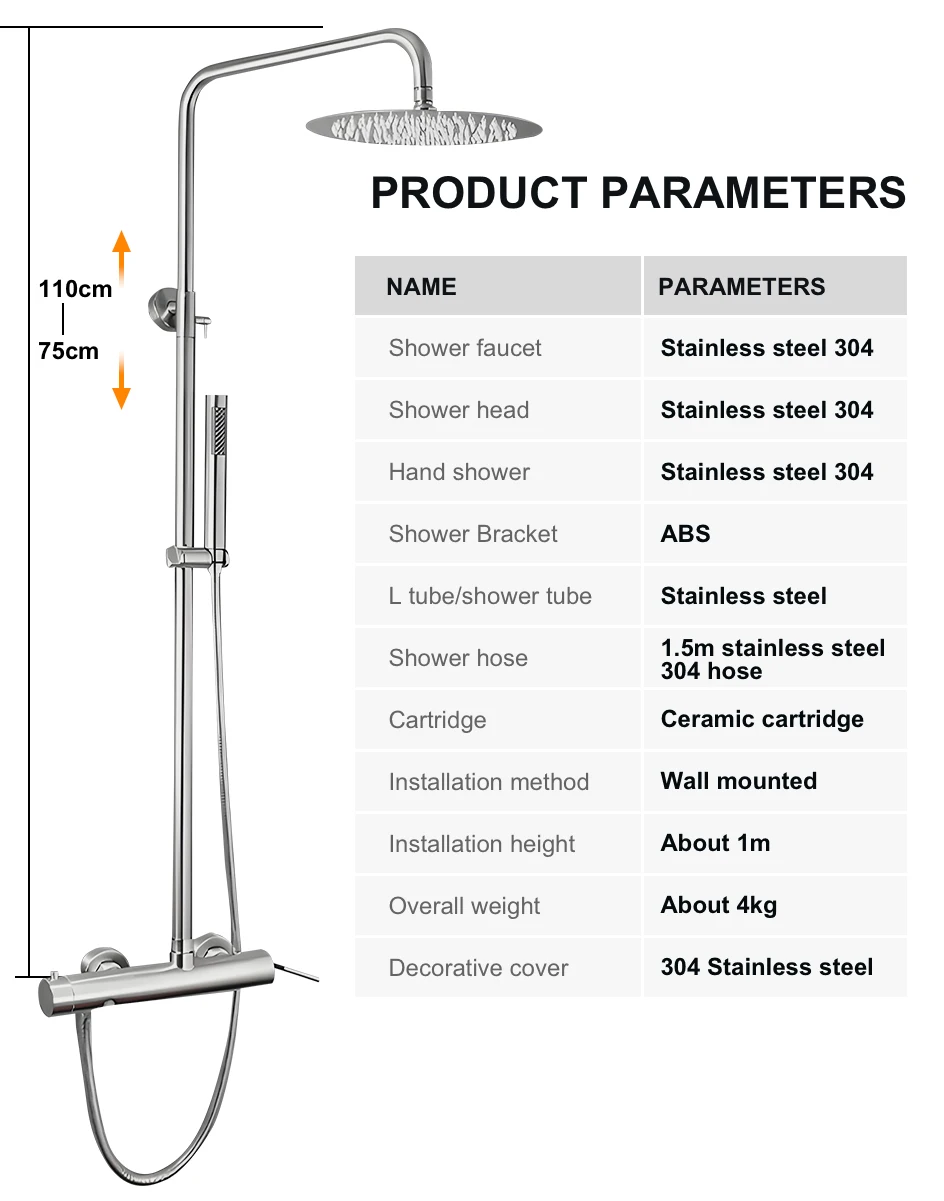 - Shower faucet material: Stainless Steel 304