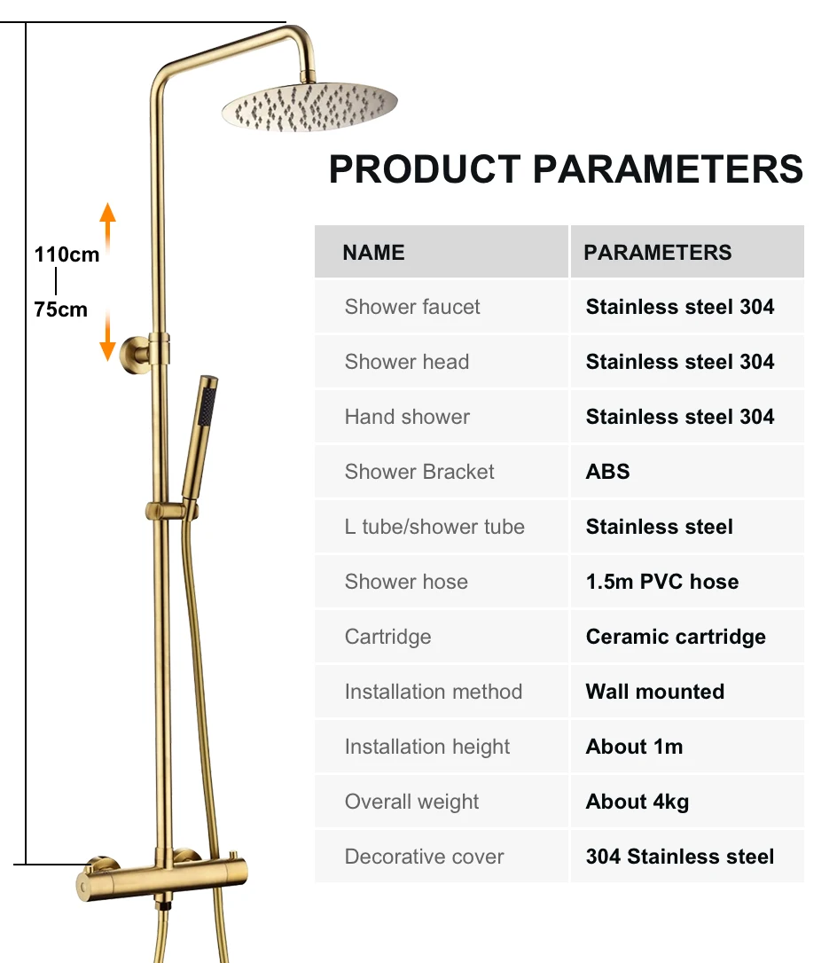 - Shower faucet material: Stainless Steel 304