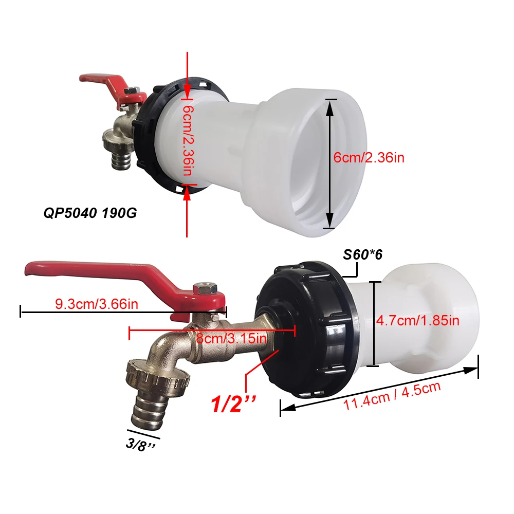 Soyez le premier à laisser votre avis sur “IBC S60 * 6 robinet de réservoir d’eau avec adaptateur, ensemble de tuyaux d’extension, compte-gouttes d’irrigation de jardin, connecteur de source d’eau, accessoire de robinet”