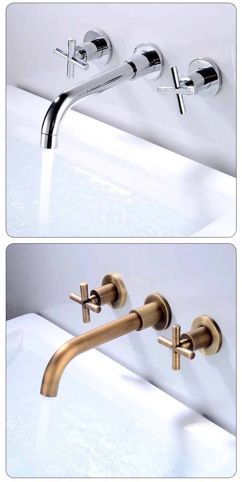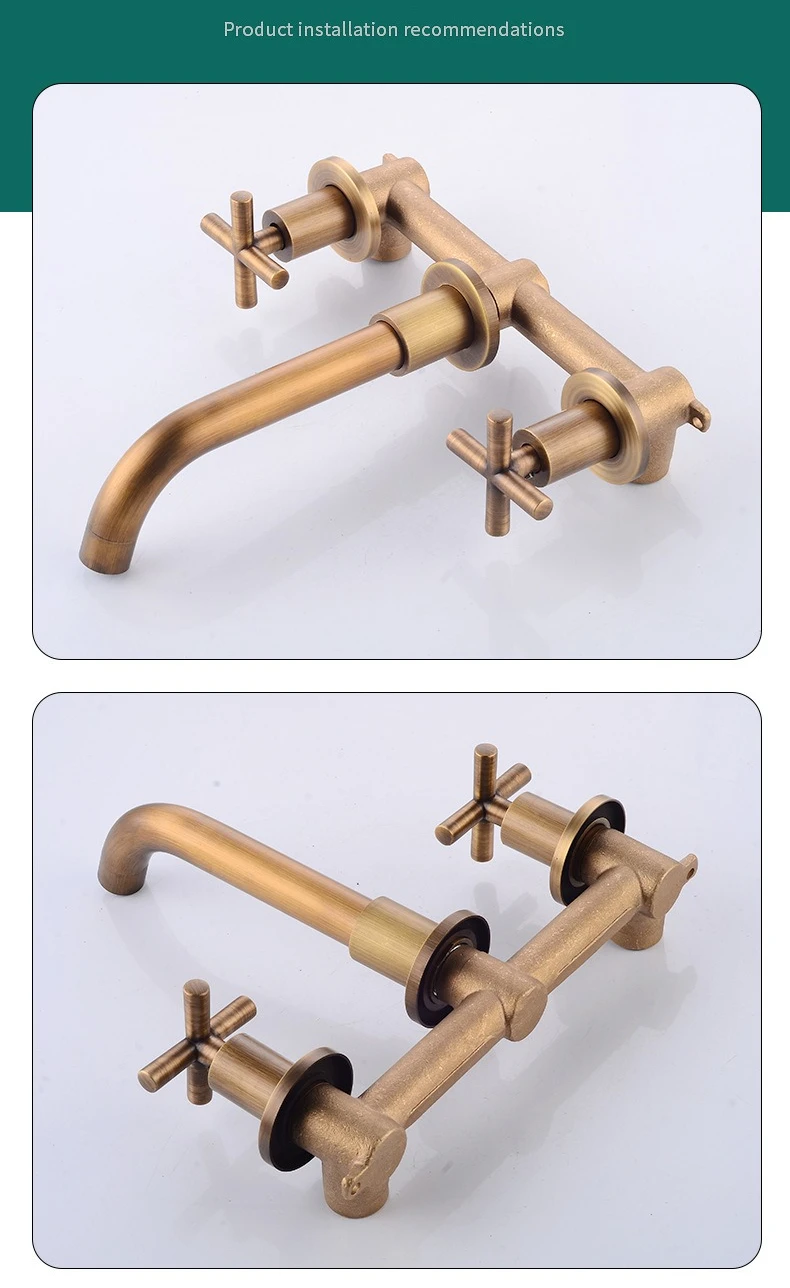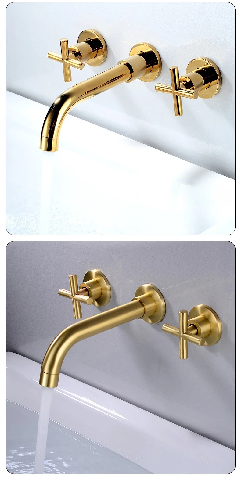 In-Wall Basin Faucet Set 3 hole Gold/Black Gold Brass Double Cross Handle Wall Mounted Bathroom Sink Faucet Hot Cold Tap |