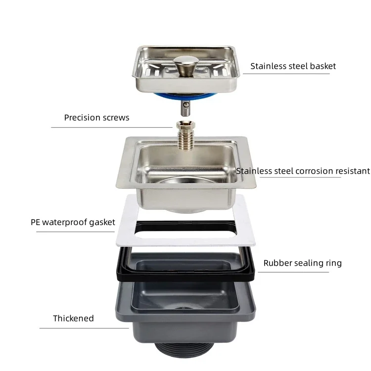 Évier en acier inoxydable égouttoir carré égouttoir de cuisine crépines filtre lie déodorant tuyau flume avec trop-plein accessoires de cuisine