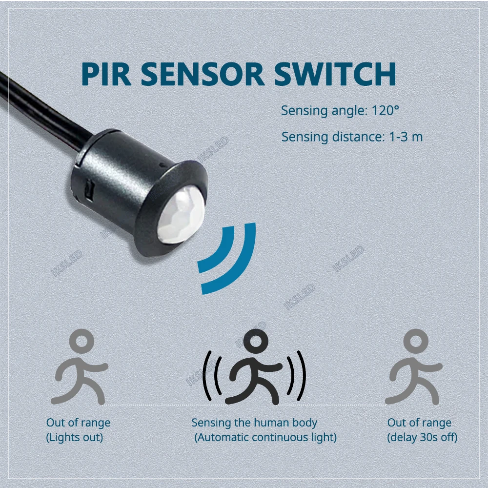 - PIR Sensor Switch: The light turns on when people come.and turns off 30safter people leave.