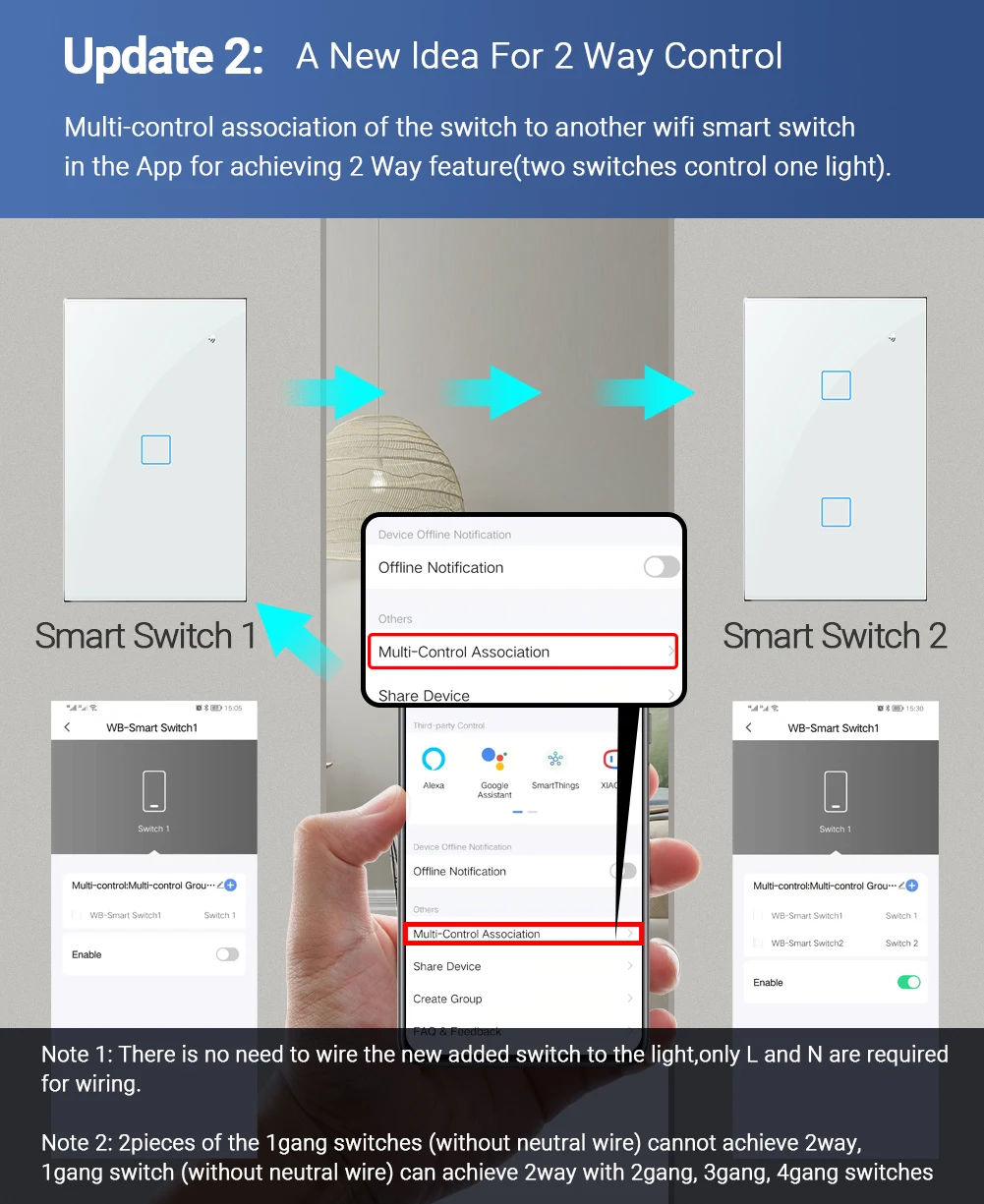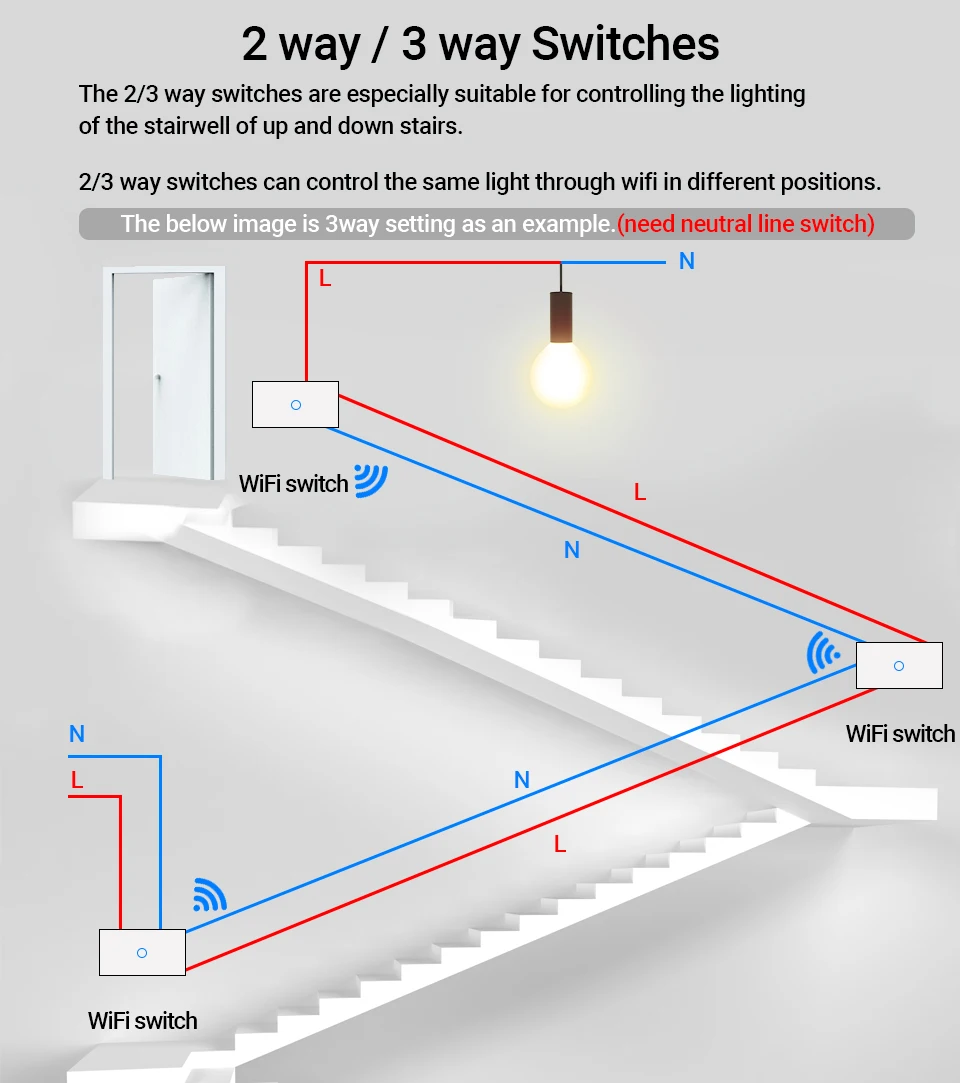 L’interrupteur à 2 voies nécessite aucune ligne supplémentaire et la fonction à 2 voies sont implantée directement via WiFi.Si vous avez aucune questions, veuillez contacter le service client.