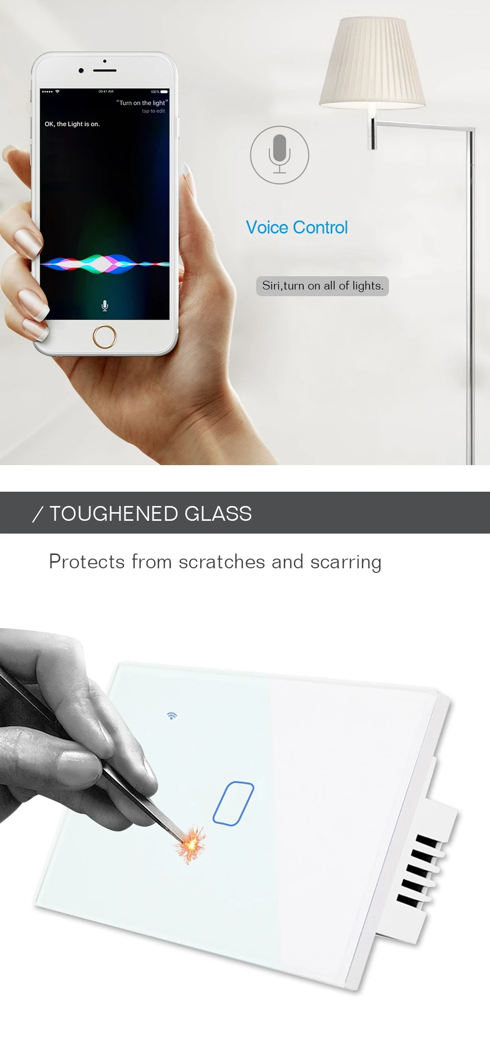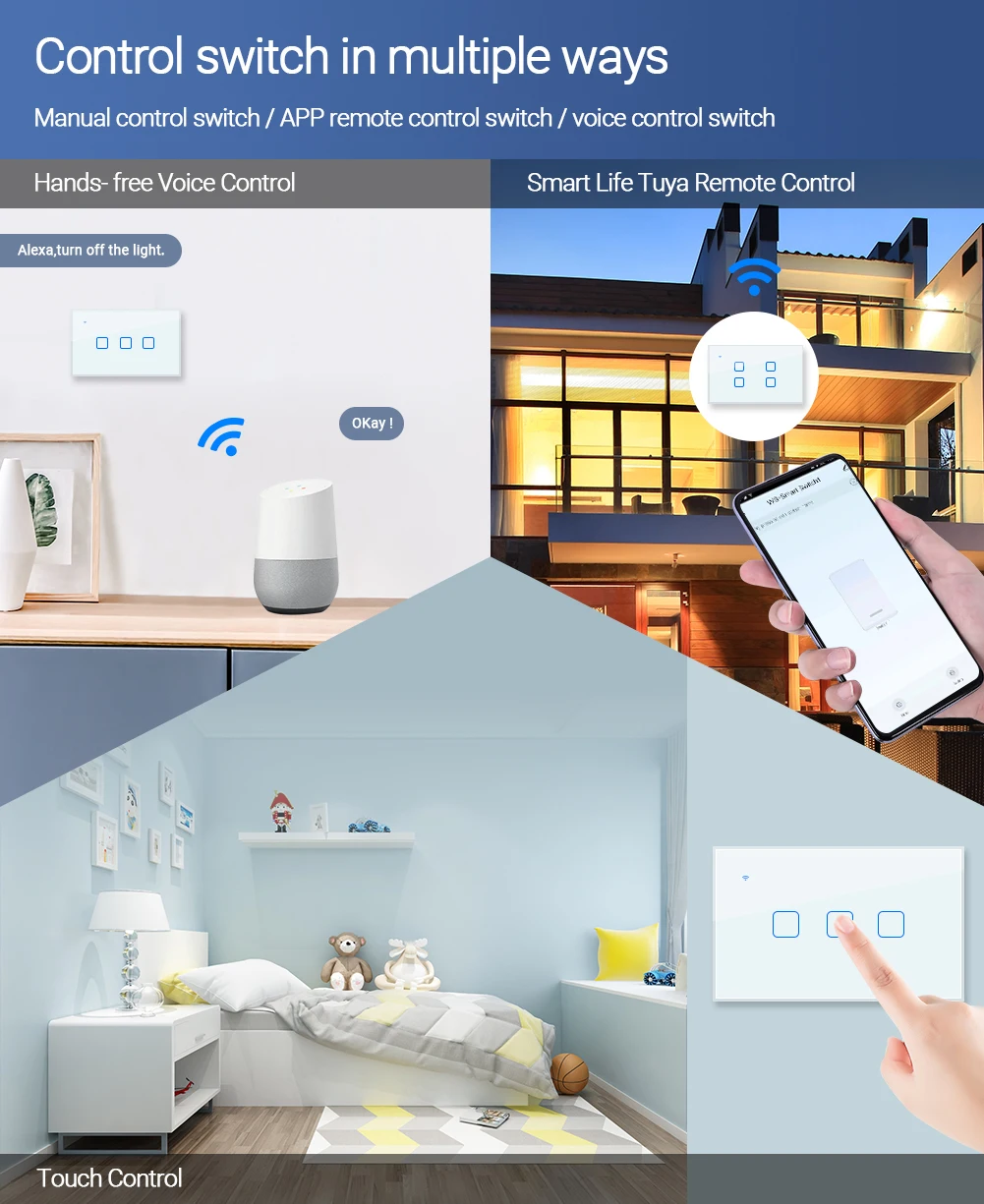 Interrupteur d’éclairage intelligent Wifi, écran en verre, panneau tactile, commande vocale, commutateur mural sans fil, fonctionne avec Alexa Google Home 1/2/3/4 gangs