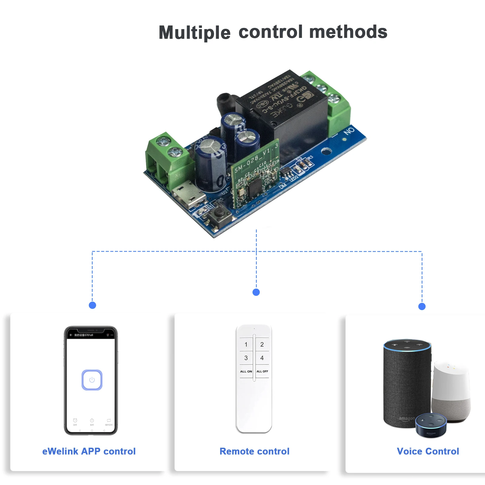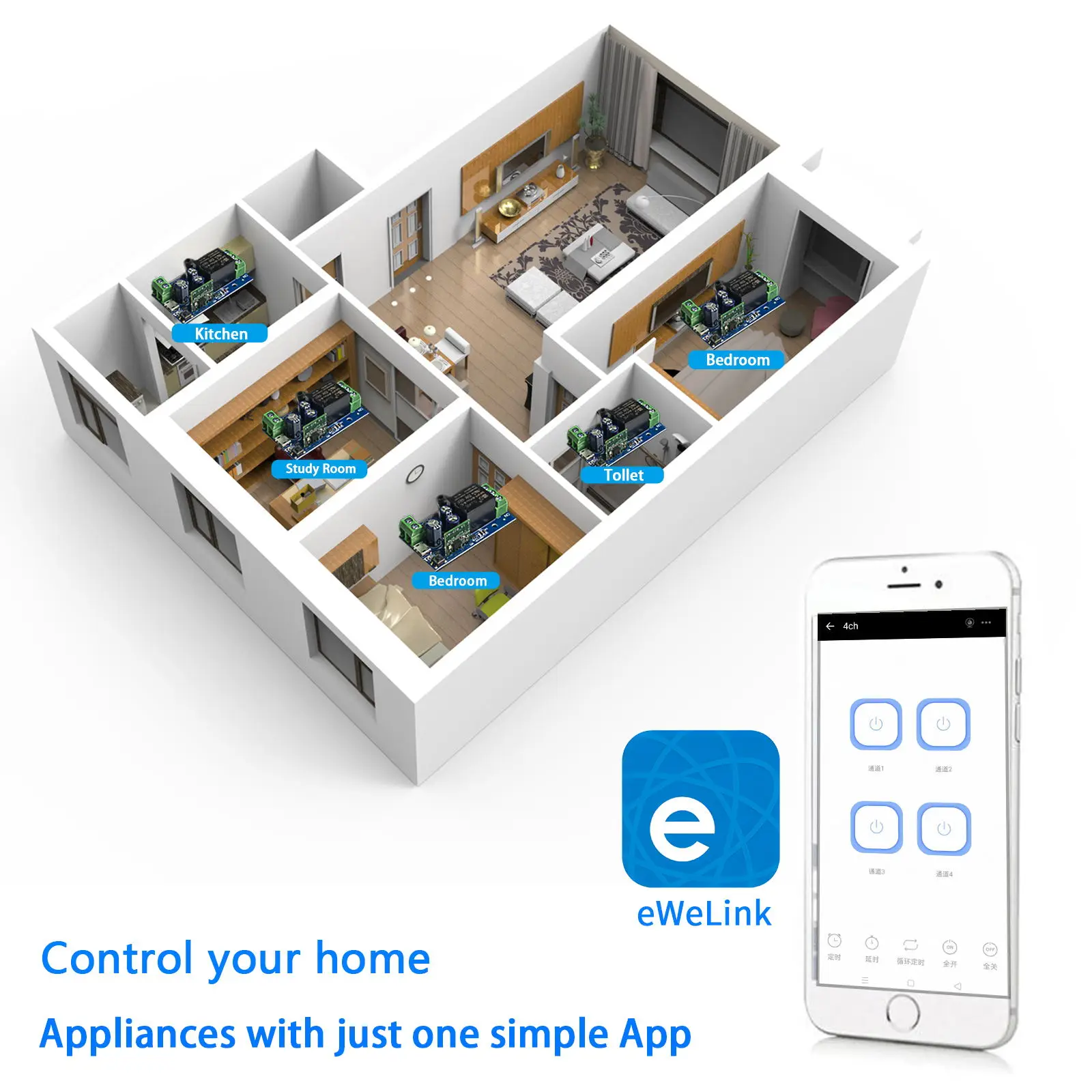 Interrupteur intelligent WiFi QIACHIP RC avec application eWelink, 10a AC 0-250V USB 5V 1 CH 2.4G, adapté aux moteurs de rideaux, lumières LED pour portes de Garage