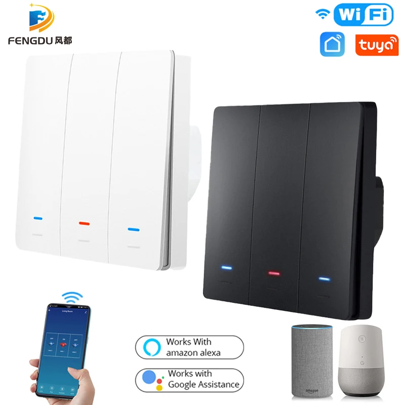 Interrupteur intelligent Tuya WiFi, boutons poussoirs, pour luminaire mural, Compatible avec Google Assistant Alexa