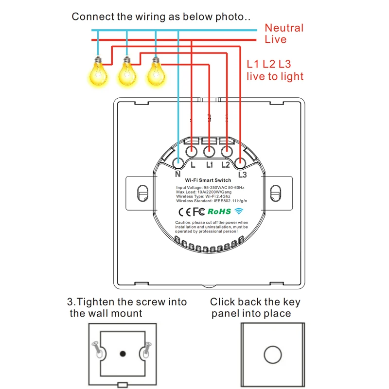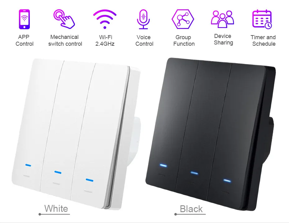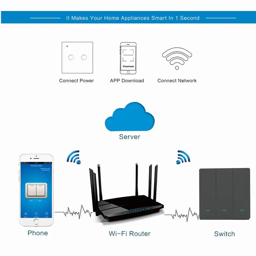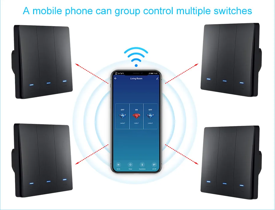 Ce commutateur de bouton wifi supporte la puissance maximale de 2200W, qui peut fonctionner avec la plupart des lumières et autres appareils électriques, se connecter à votre smartphone et contrôler vos appareils ménagers avec facilité.
