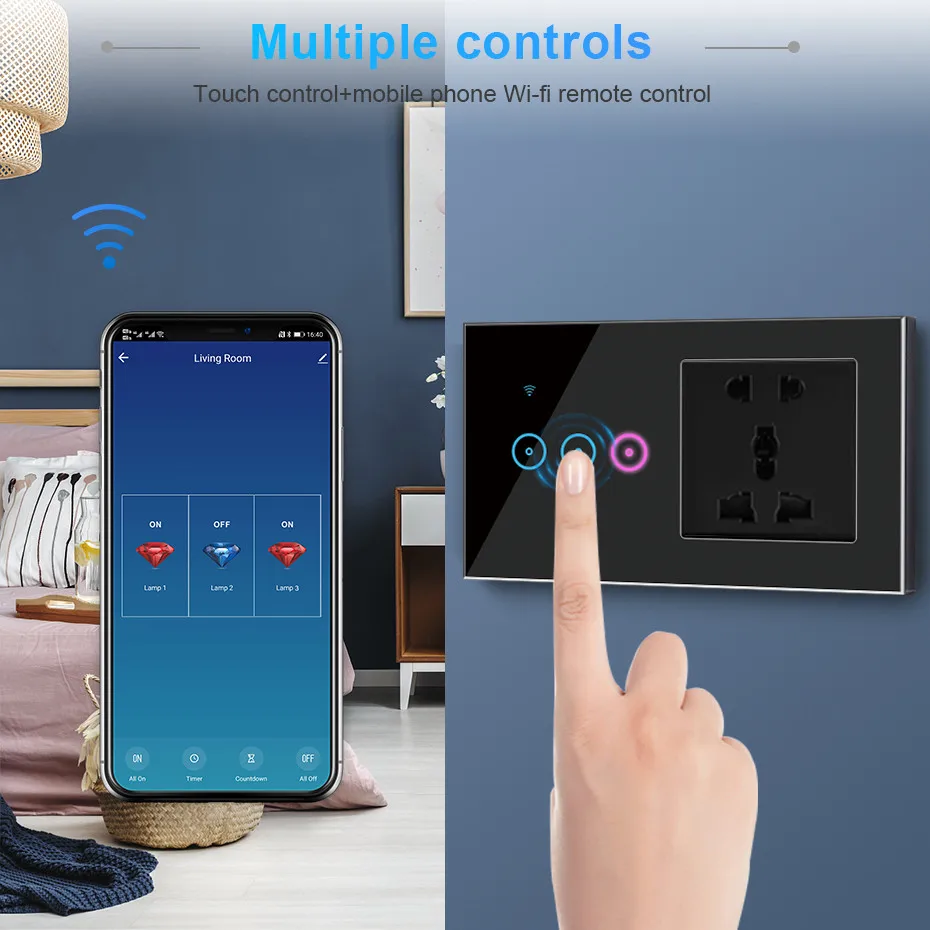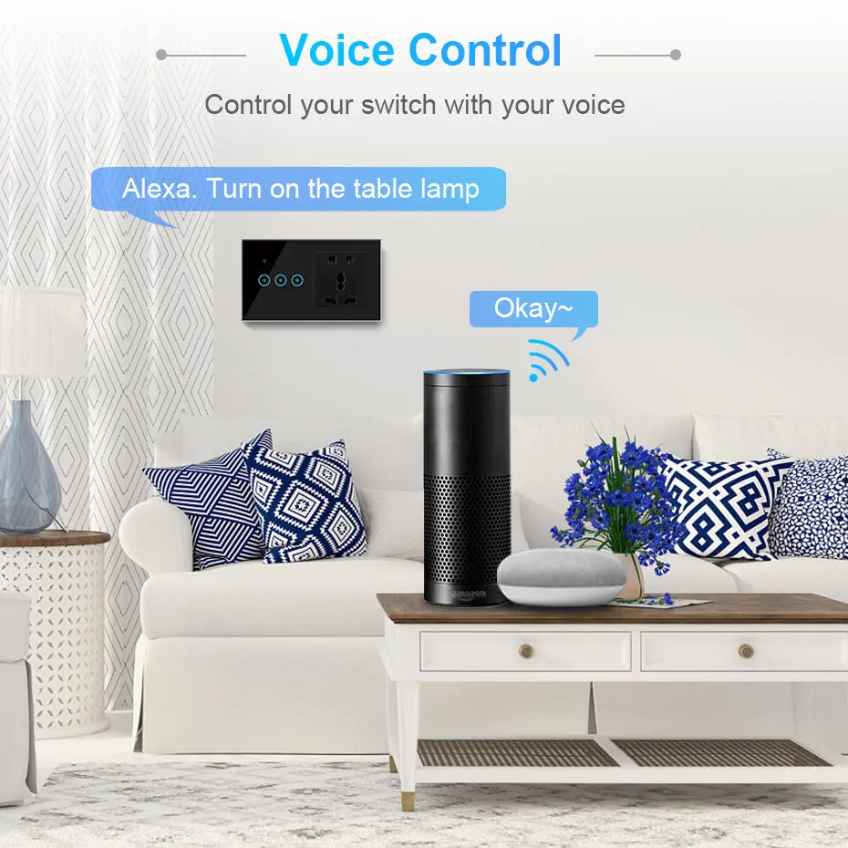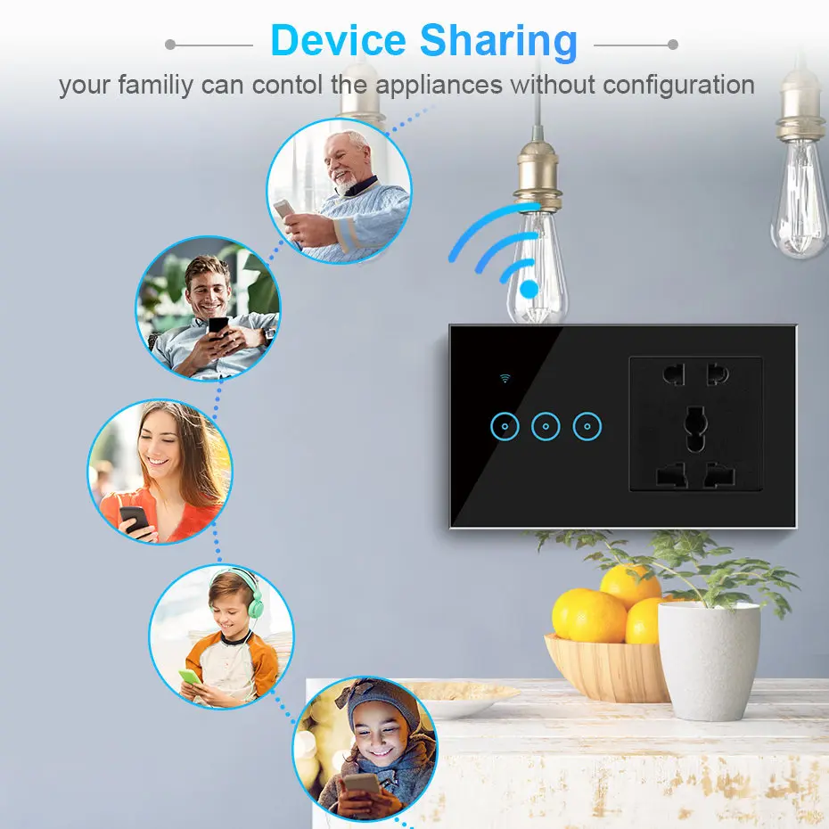 WiFi Smart Light Interrupteur mural Prise à écran tactile Smart Life Tuya Télécommande sans fil fonctionne avec Alexa Google Home US EU UK AU