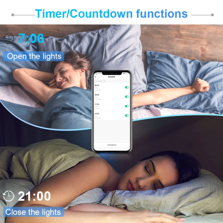 L’interrupteur de minuterie intelligent allume/éteint automatiquement les appareils après avoir réglé une minuterie pour cet interrupteur, ce qui est essentiel pour la planification quotidienne et vous apporte un style de vie pratique et intelligent.