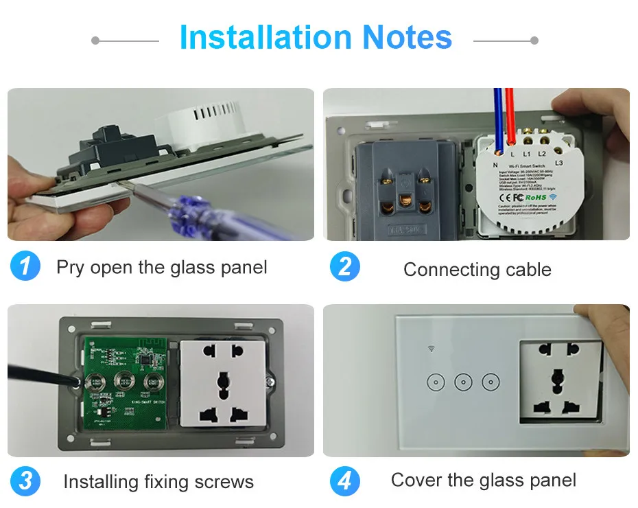 L’écran tactile en verre trempé de ce commutateur intelligent diy est sensible au contrôle tactile, le matériau en verre durable de qualité supérieure garantit jusqu’à 20 millions de fois toucher les chiffres par nos tests rigoureux.