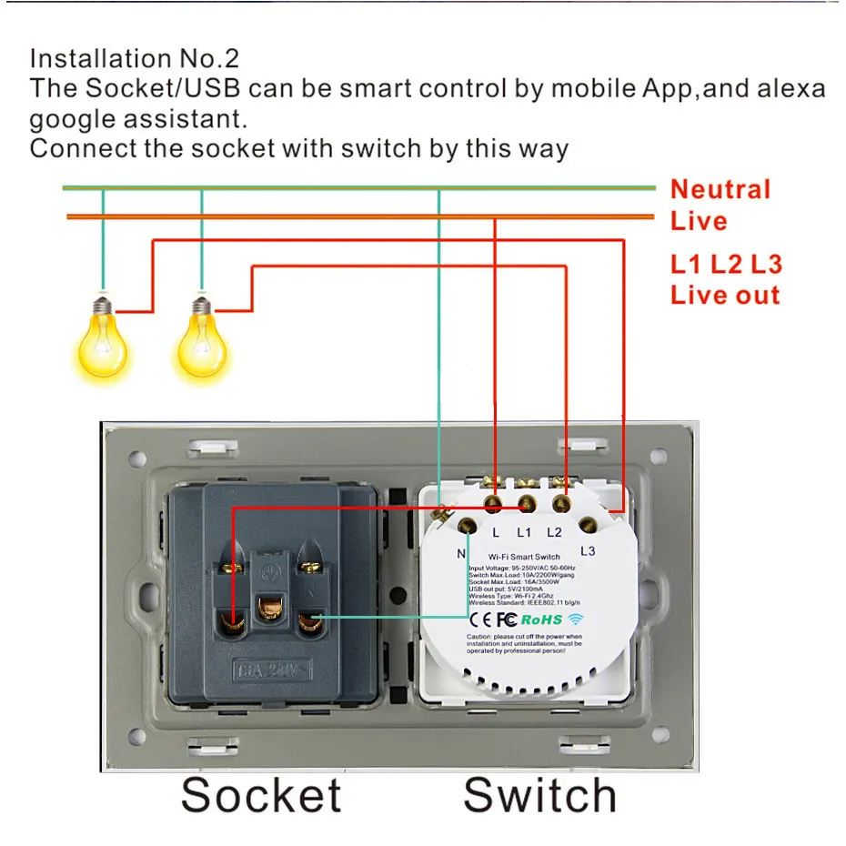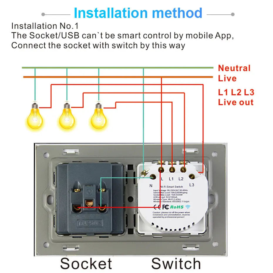 Ce commutateur intelligent Wi-Fi doit être alimenté à la fois par les lignes Live et Neutral, veuillez couper l’alimentation lors de l’installation et de l’installation, et le faire fonctionner par une personne professionnelle.