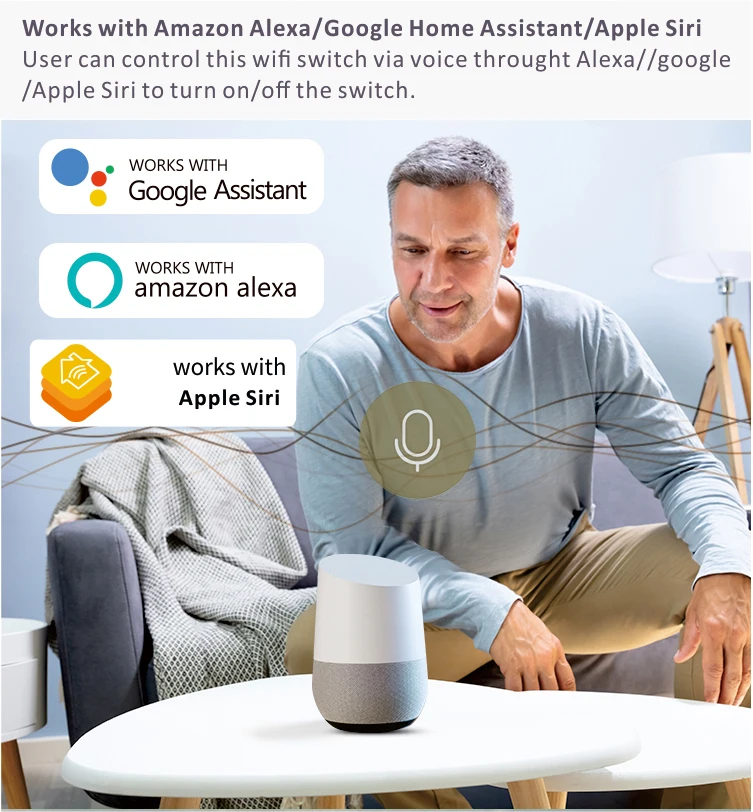- Works with: Amazon Alexa, Google Home, Apple Siri