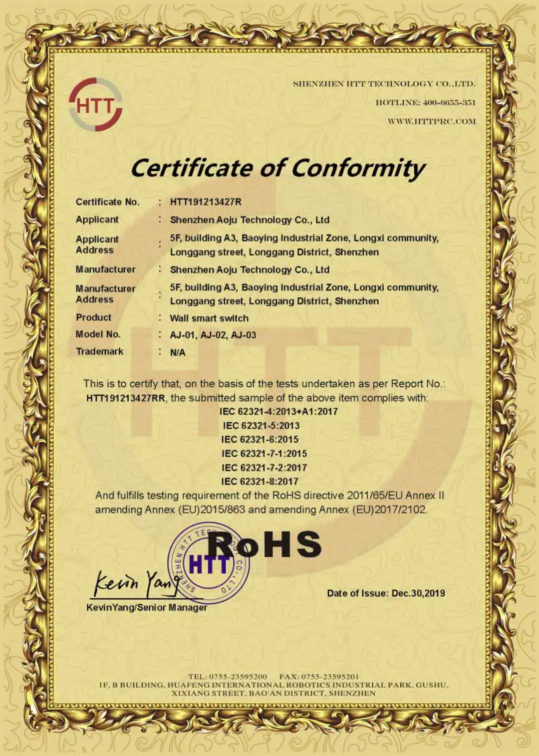 Certification : FCC, CE, RoHS