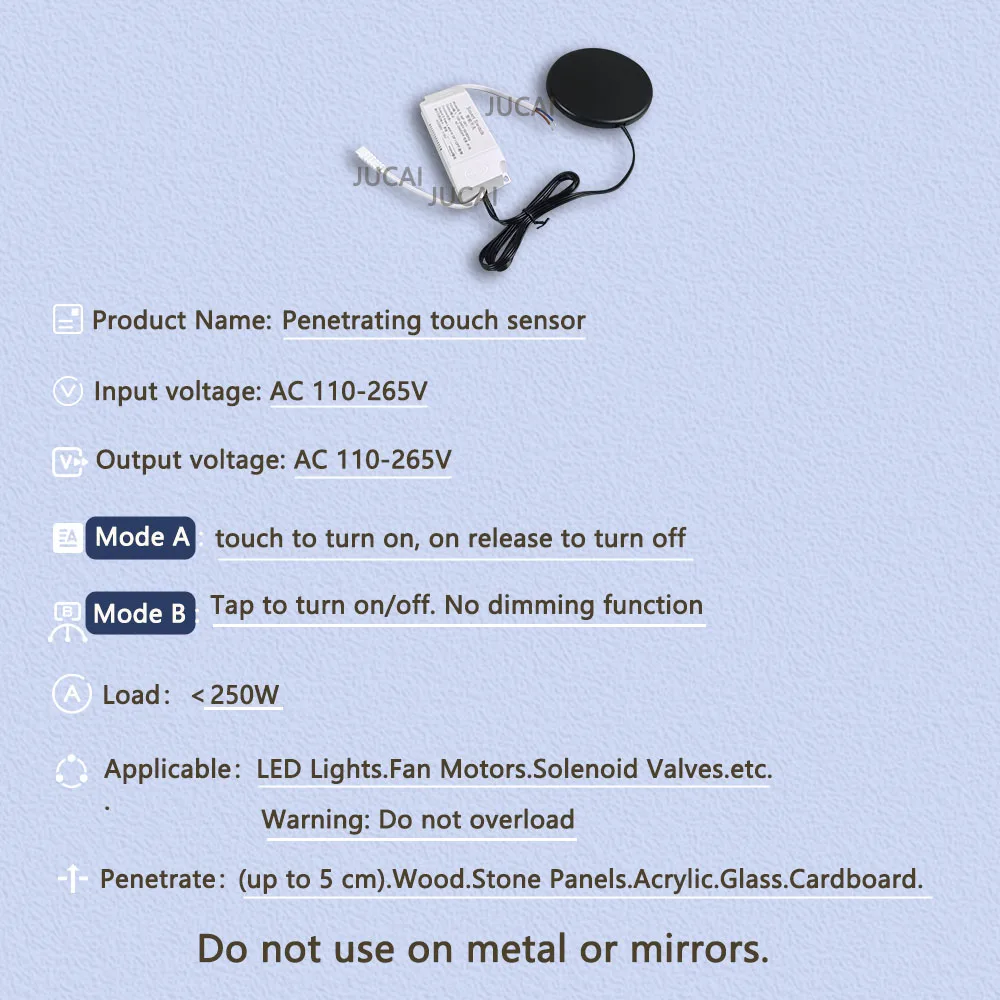 charge : <250W Distance de pénétration :≤5CM Panneau de materia pénétrant.Dalles de roche Acrylique.Verre.Carton.Matériaux non métalliques Fixez l’interrupteur en toute sécurité avant d’utiliser. Alors accélère.