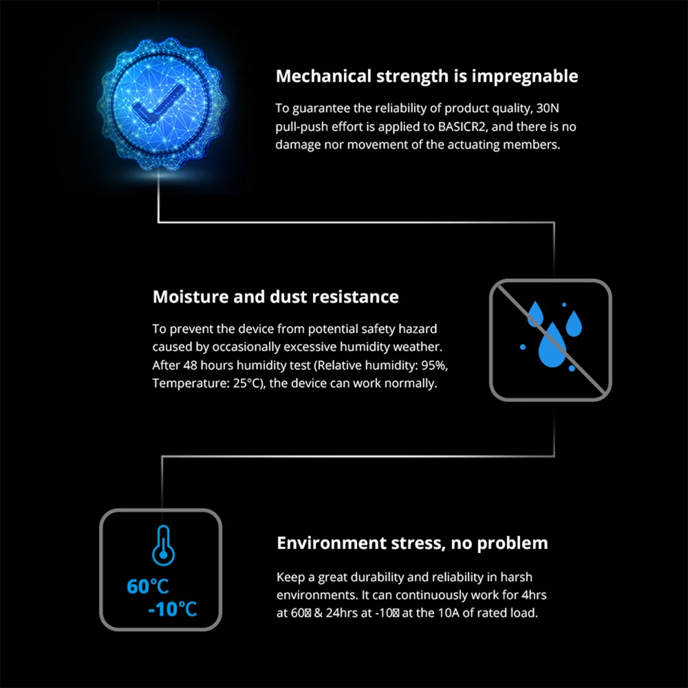 Basé sur le classique BASIC, SONOFF étends constantemente la catégorie du produit, ainsi que améliore et optimiser les performances du produit dans la séquence.Ultimatement, BASICR2 avec la certification ETL sort.