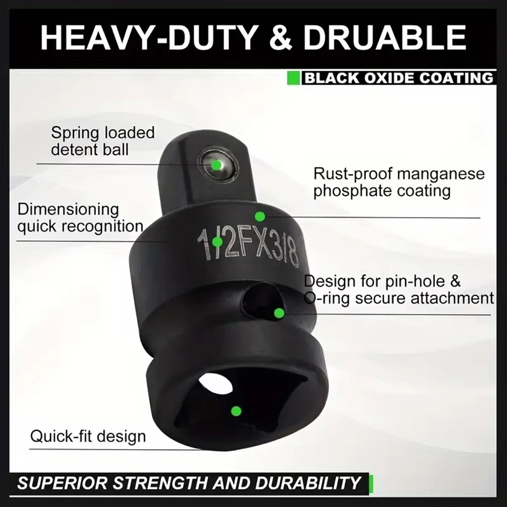 3.Adoptant une conception à tête carrée en arc à quatre coins, ce kit de convertisseur de manchon d’impact est doté d’un roulement à billes pour assurer une fixation ferme.