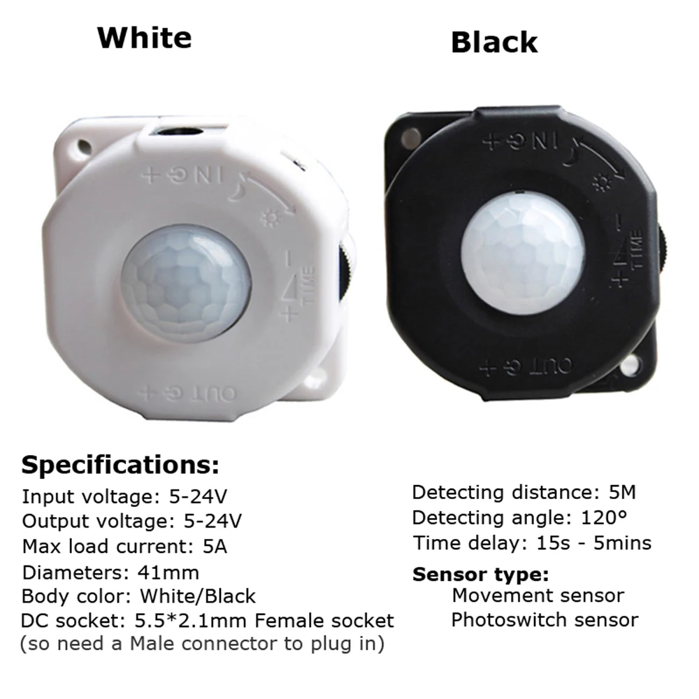 Détecteur de mouvement interrupteur de lumière DC 5V 12V 24V mouvement automatique infrarouge 12V capteur mouvement réglable minuterie détecteur LED interrupteur PIR